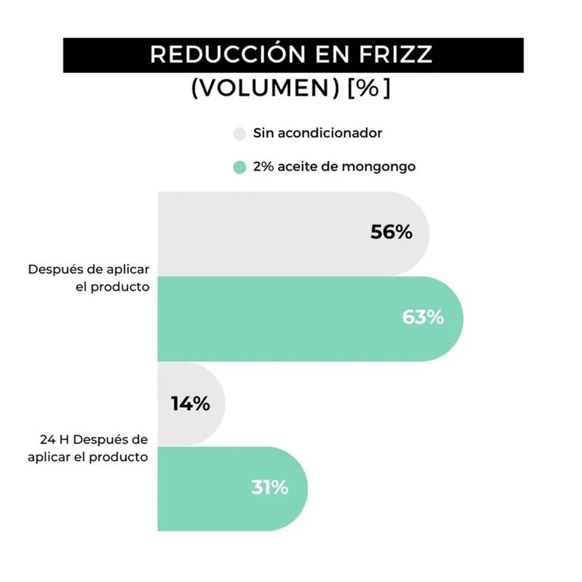 - Aceite de mongongo: Muy conocido por sus propiedades antioxidantes e hidratantes. Al ser altamente rico en ácidos grasos, hidrata, nutre y revitaliza la barba, a la vez que previene su encrespamiento. Sus estudios demuestran que el aceite de mongongo al 2% de concentración: disminuye el frizz hasta en un 63%; y hasta en un 31% pasadas 24 horas.