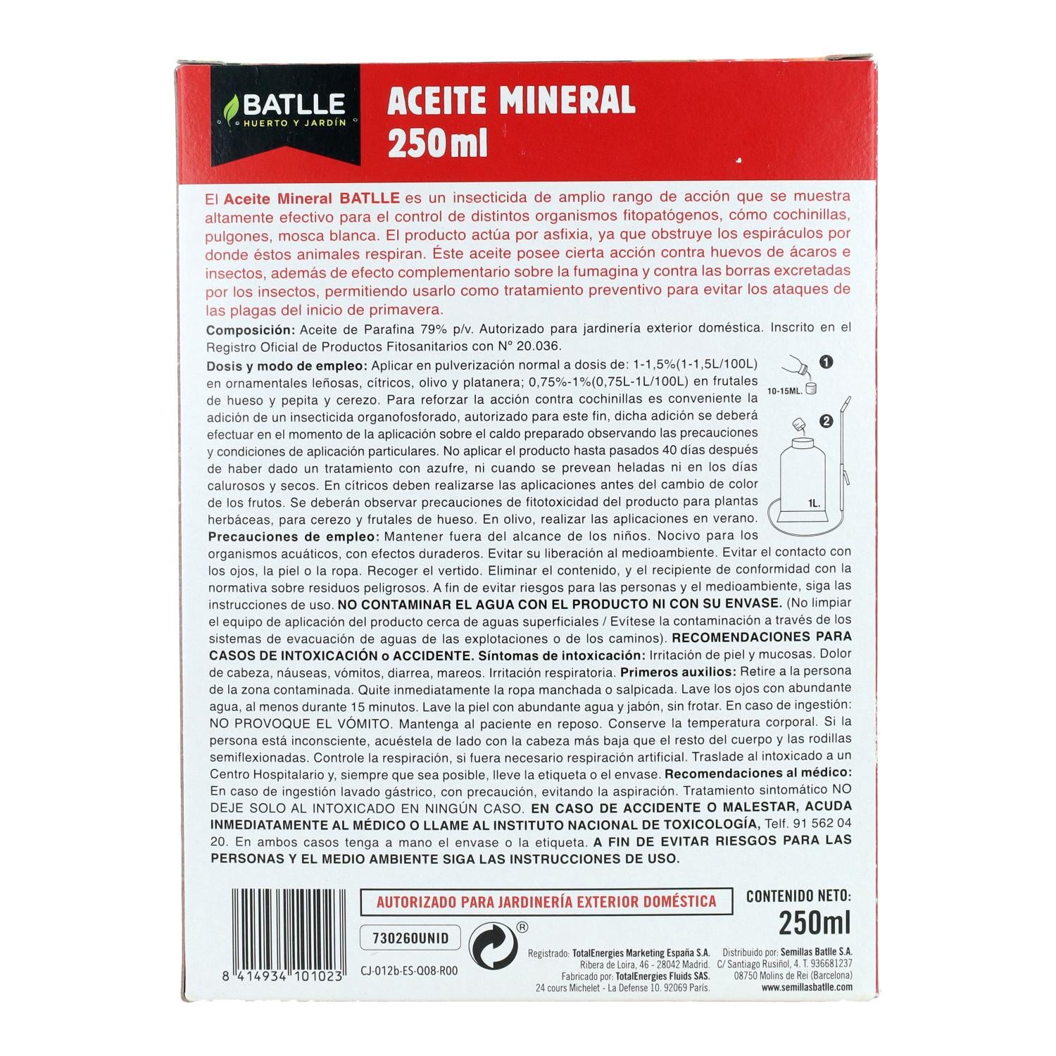 Toda la información sobre "Aceite Mineral insecticida 250 ml Batlle"