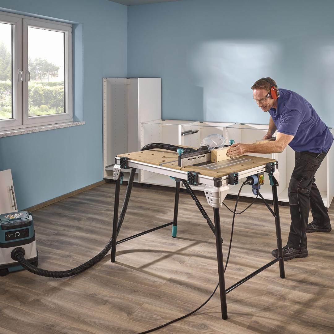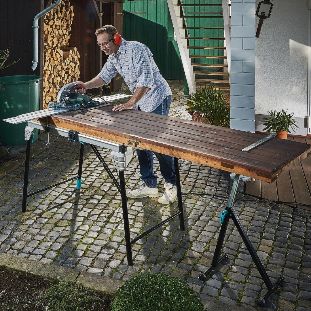 Con la llave Allen incluida pueden moverse los bloques de sujeción para adaptarlos a las piezas. Además, los bloques de sujeción sirven como pies cuando el banco está plegado, de manera que es posible almacenarlo en posición vertical ocupando un espacio mínimo. Con una capacidad de carga de hasta 120 kg, el banco para máquinas puede incluso soportar sin problemas planchas de madera maciza de gran tamaño. De esta manera, con un solo producto estará usted preparado de forma segura y eficaz frente a innumerables desafíos en el hogar.