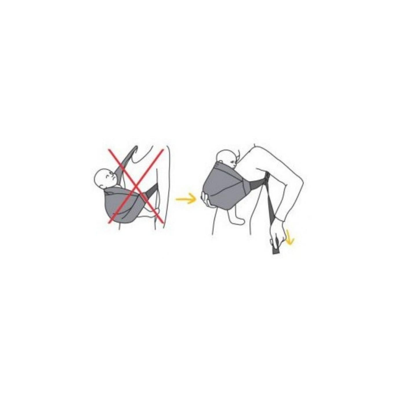 El diseño de la bandolera mantiene la curvatura natural de la espalda del bebé y queda sentado con sujeción de corva a corva