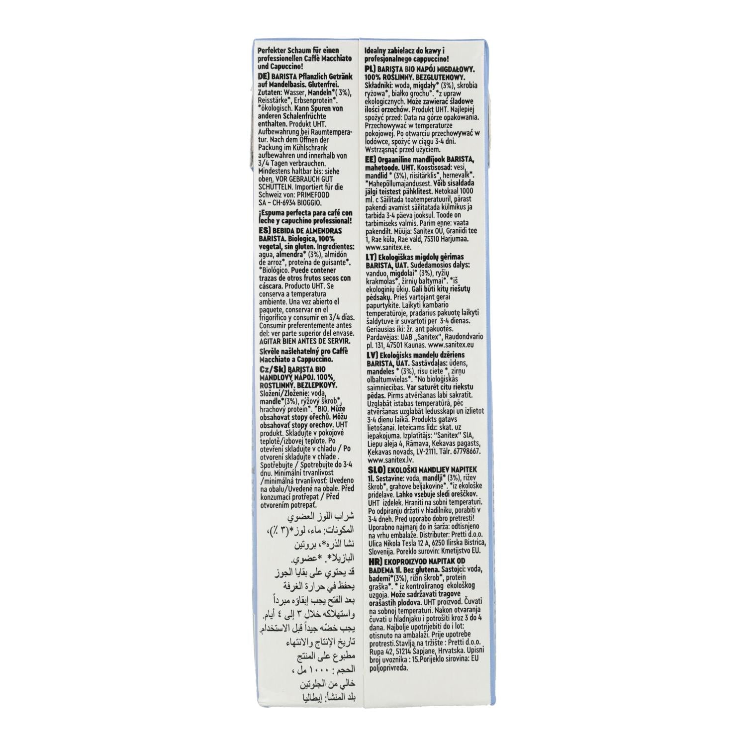 Toda la información sobre "Bebida de Almendras Barista sin gluten BIO Vitariz 1 L"