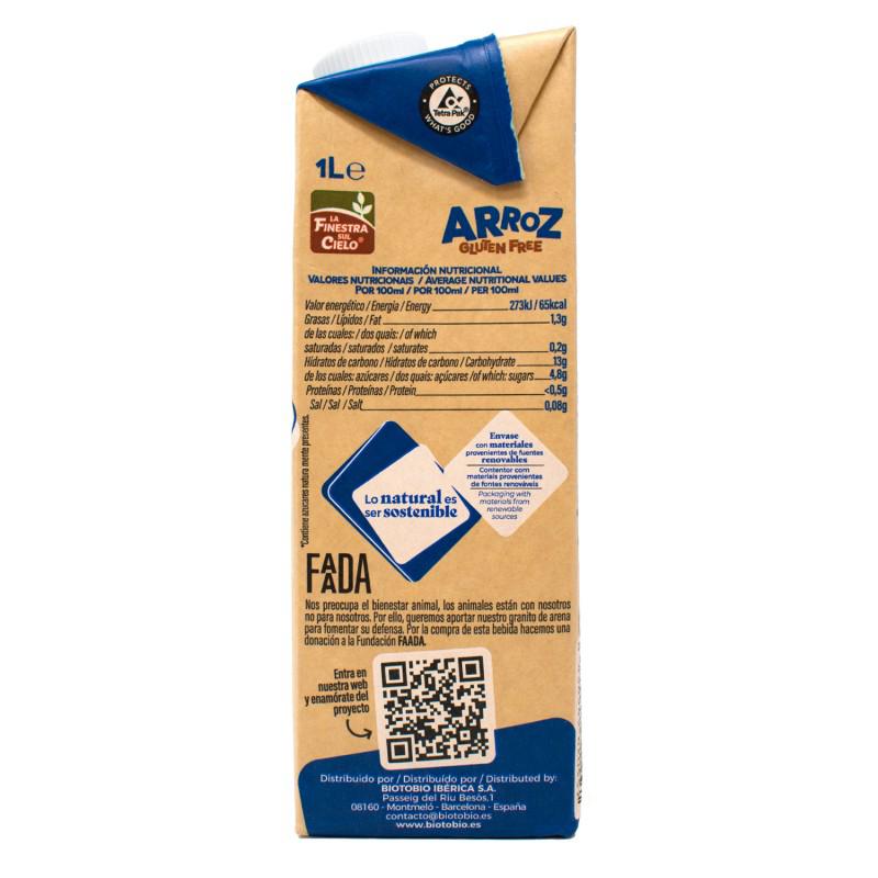 Toda la información sobre "Bebida de Arroz Sin Gluten Bio La Finestra Sul Cielo 1 L"