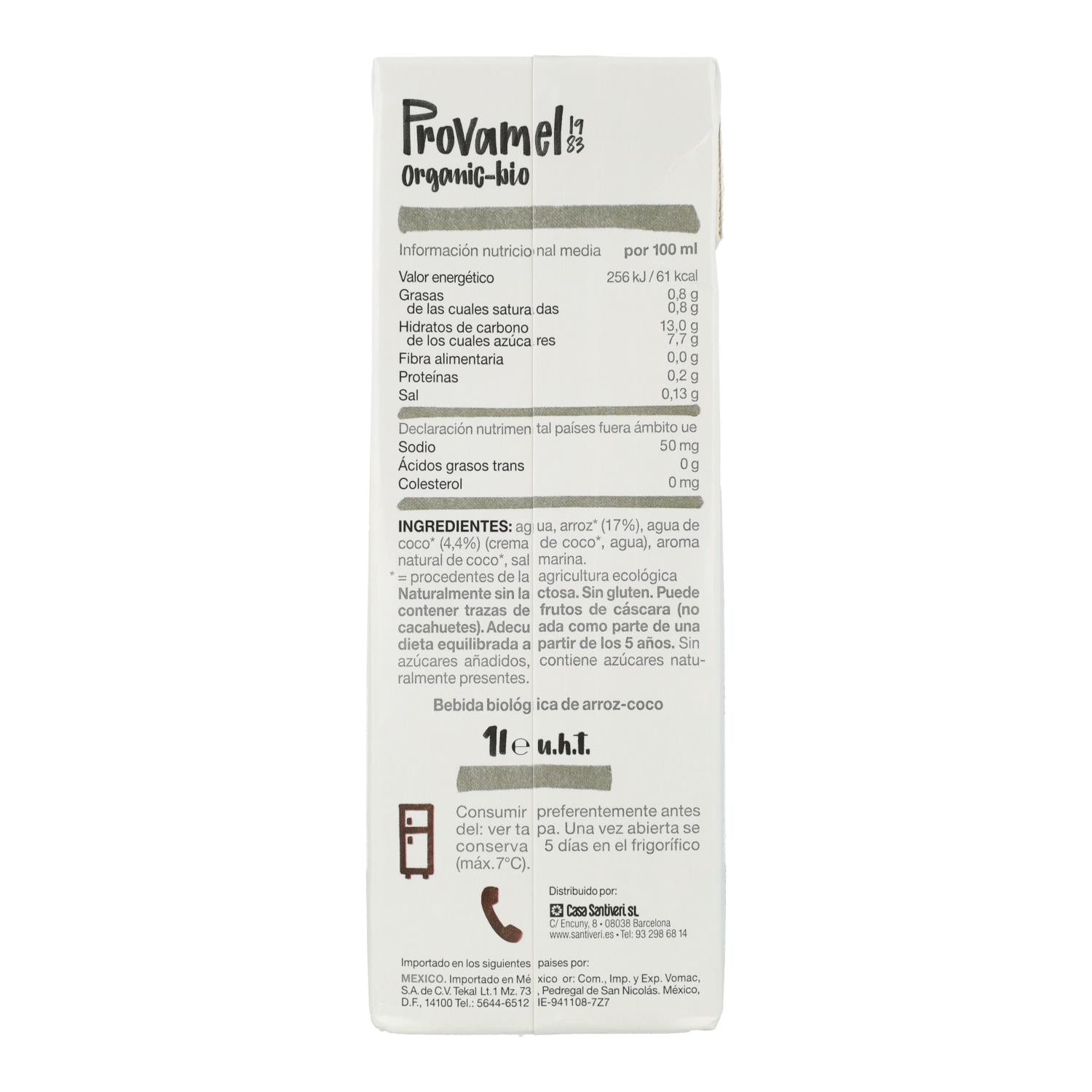 Toda la información sobre "Bebida de Arroz y Coco Bio Provamel 1 L"