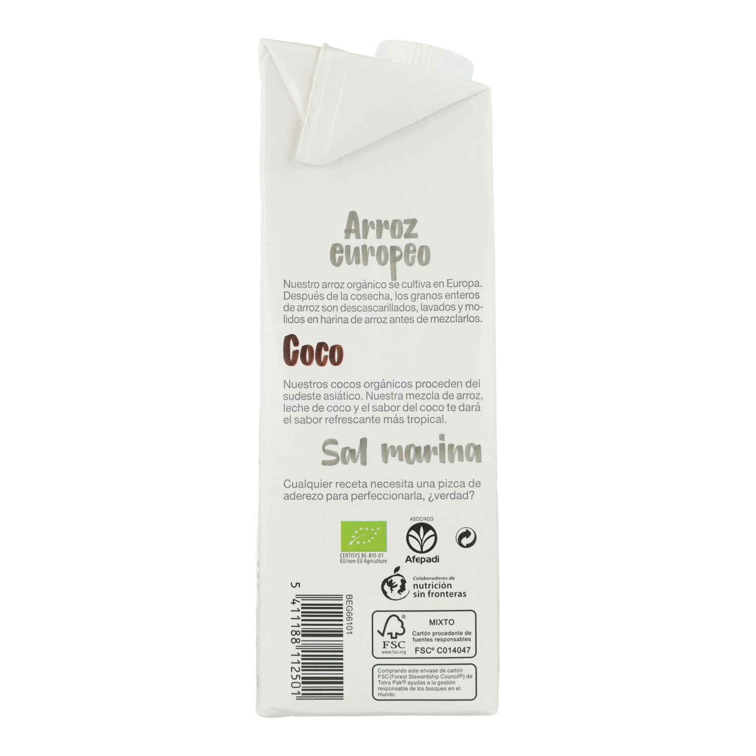 Agua, arroz* (17%), agua de coco* (4,4%) [ crema de coco*, agua ], aroma natural de coco*, sal marina, . *Procedentes de la agricultura ecológica. Naturalmente sin lactosa. Sin gluten.
