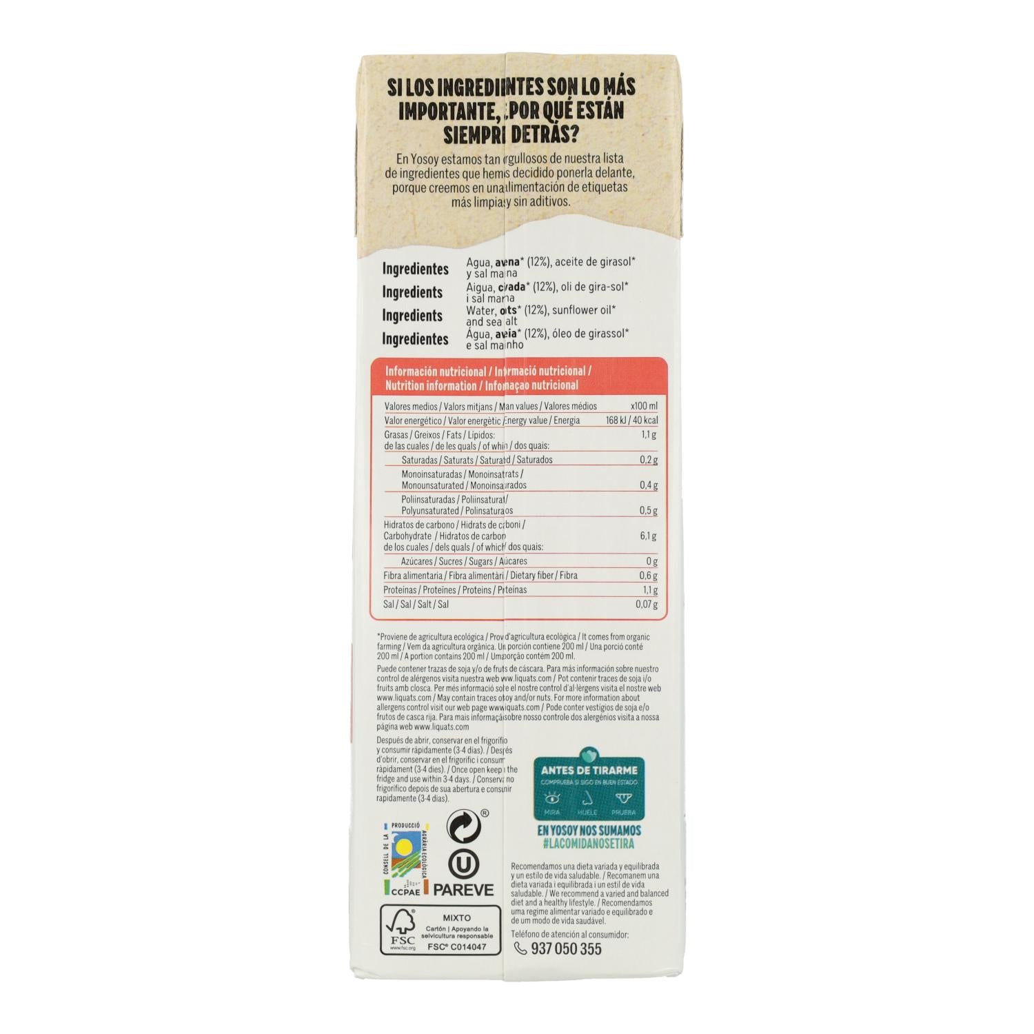 Toda la información sobre "Bebida de Avena 0% Azúcares Bio Yosoy Ecológica 1 L"