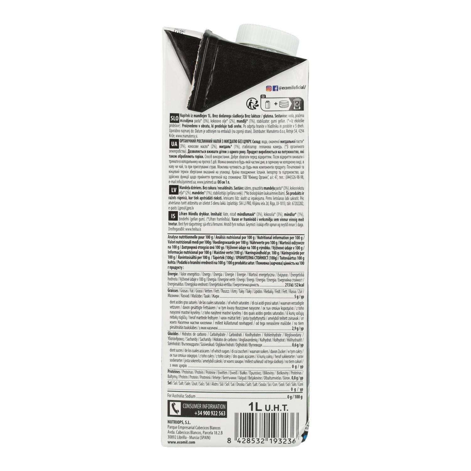 Toda la información sobre "Bebida vegetal de Almendra Nature KETO BIO EcoMil 1L"