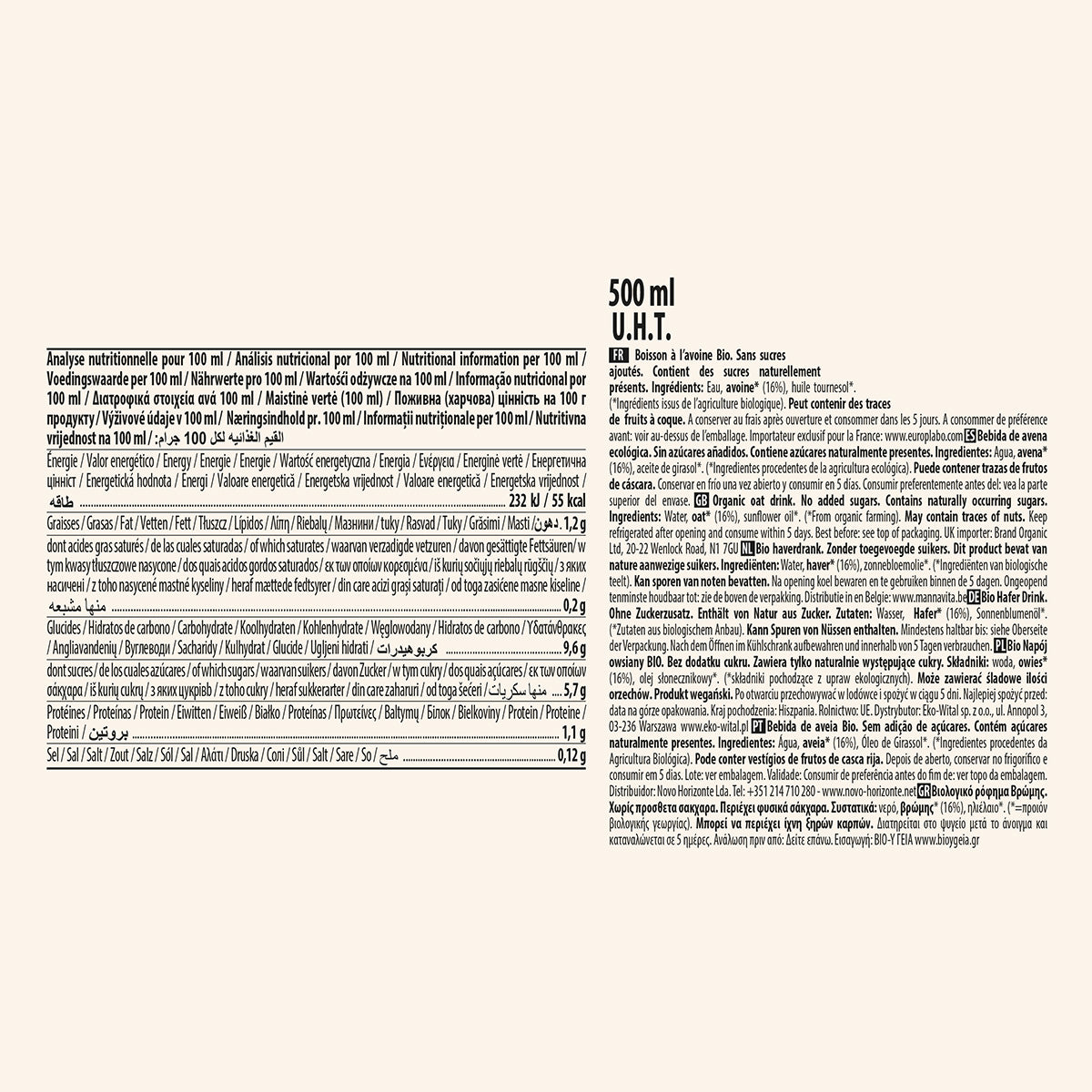 Toda la información sobre "Bebida Vegetal de Avena Sin Azúcar Bio ECOMIL 500 ml"