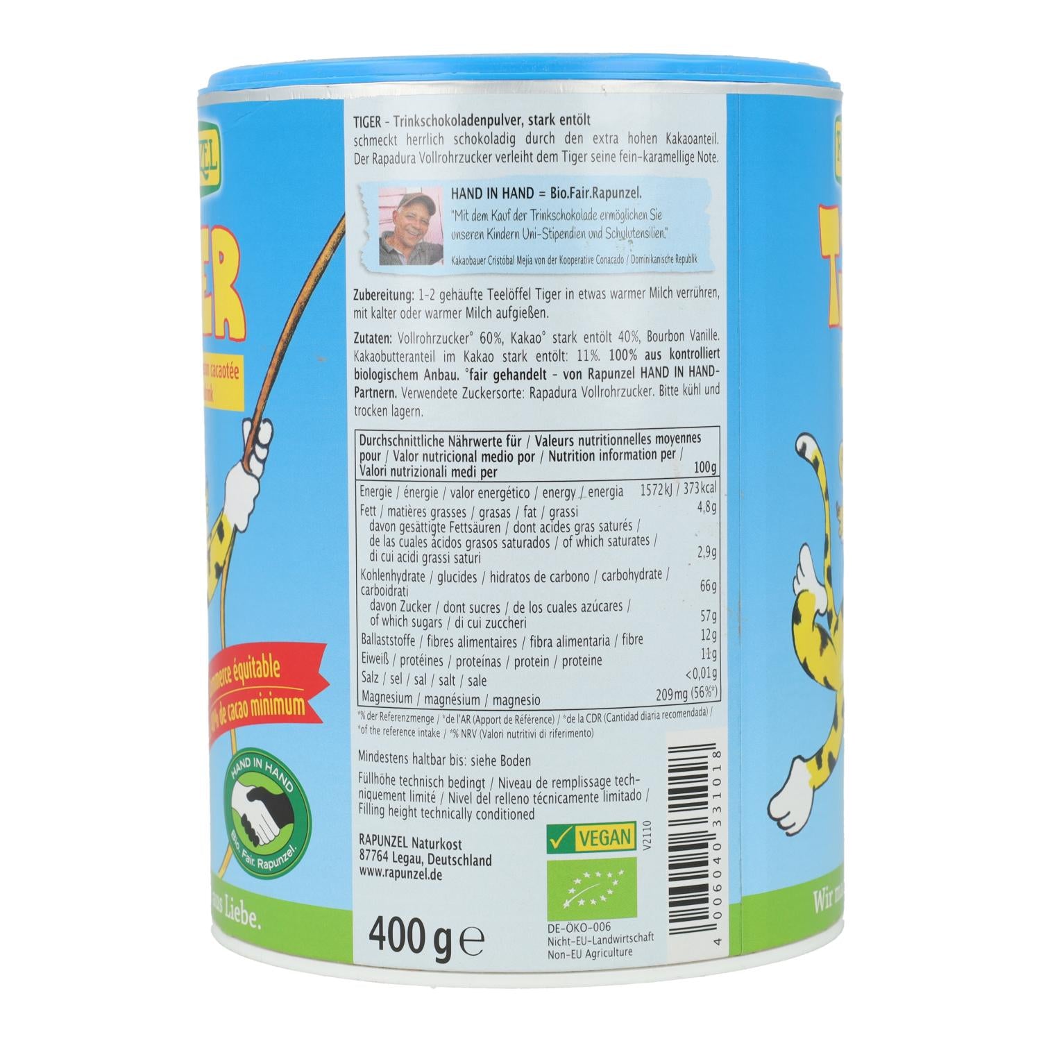 Toda la información sobre "Cacao soluble Tiger Rapunzel, 400 g"