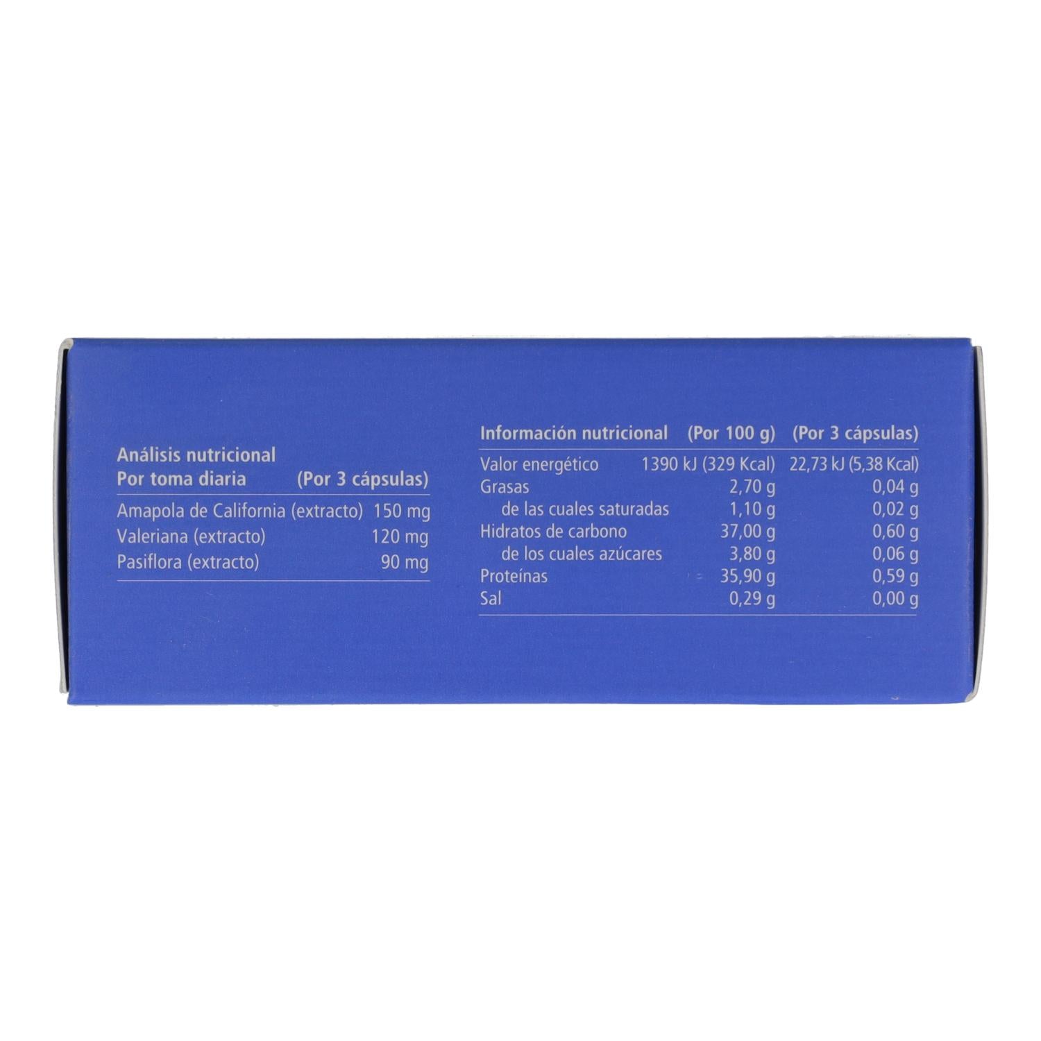 Es un complemento alimenticio a base de extractos estandarizados y titulados de Valeriana officinalis (Valeriana), Pasiflora incarnata (Pasiflora) y Escholtzia californica (Amapola de California).