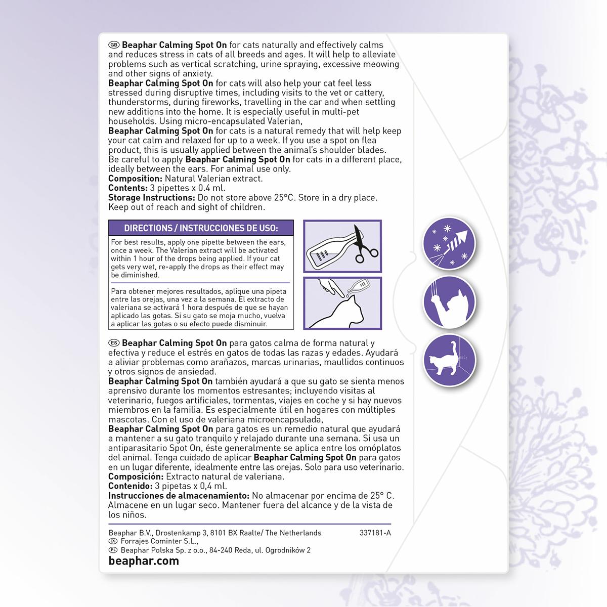 - CALMA EL ESTRÉS DEL GATO: A base de extractos naturales de plantas, las pipetas Calming de Beaphar son la solución ideal para calmar a los gatos y reducir los problemas de comportamiento.
