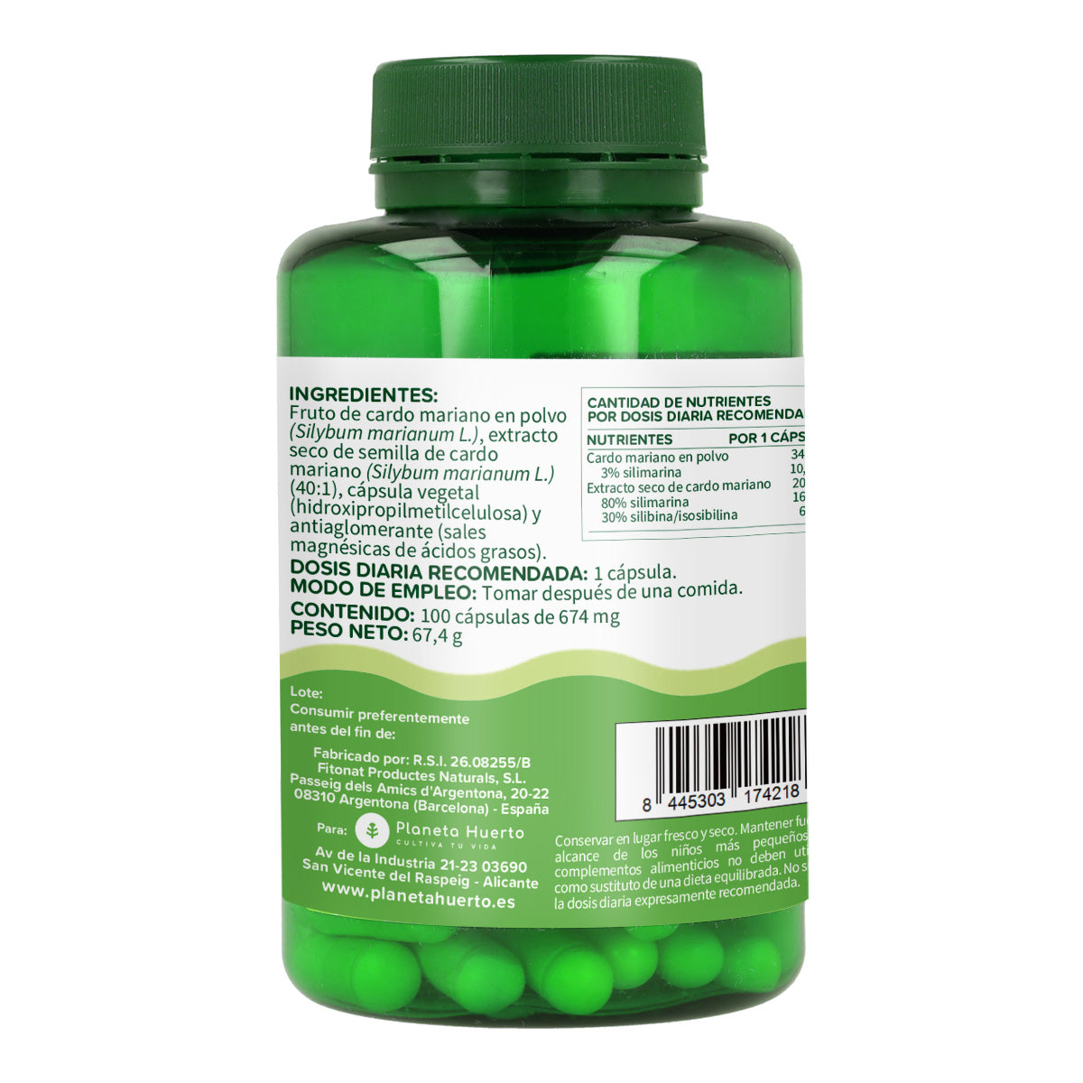 Bote con 100 cápsulas vegetales de 674 mg.