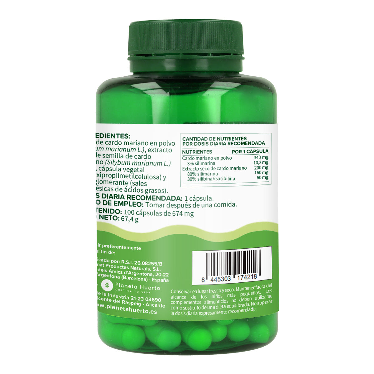 | Cardo mariano en polvo | 340 mg |