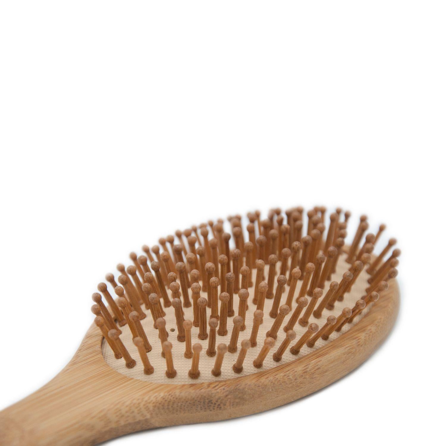 Cuida tu cabello y al medio ambiente con este cepillo ecológico de bambú. Sus cerdas de bambú favorecen el cuidado del cabello permitiendo un cepillado suave del mismo, función anti friz.