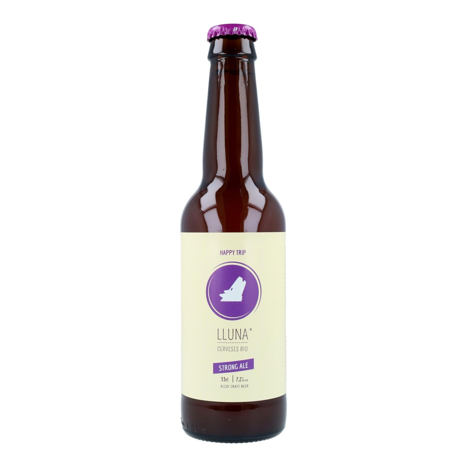 Cerveza Lluna Happy Trip sin gluten Triple malta procedente de agricultura ecológica.