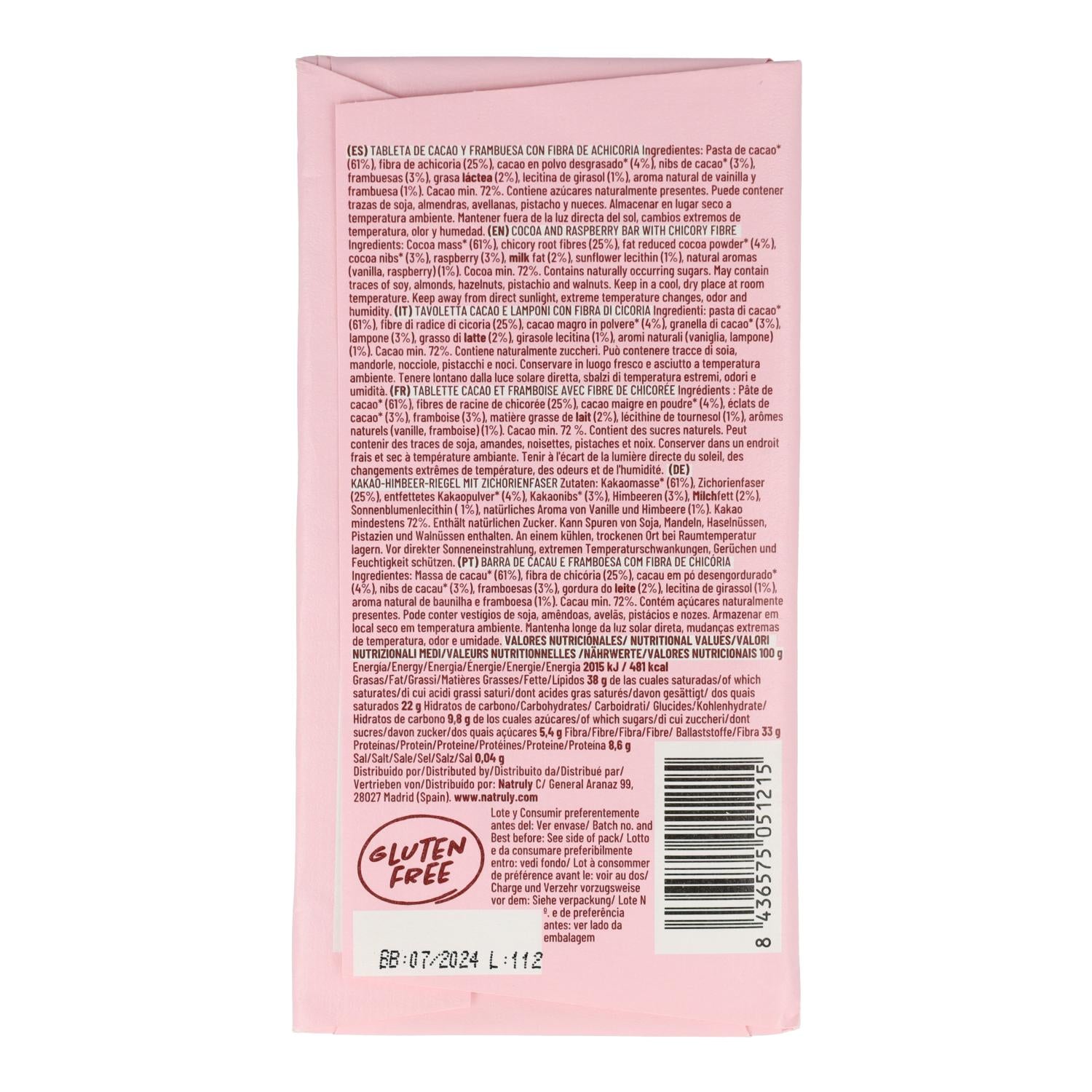 Toda la información sobre "Chocolicious con frambuesa y nibs de cacao Natruly 85 gr"
