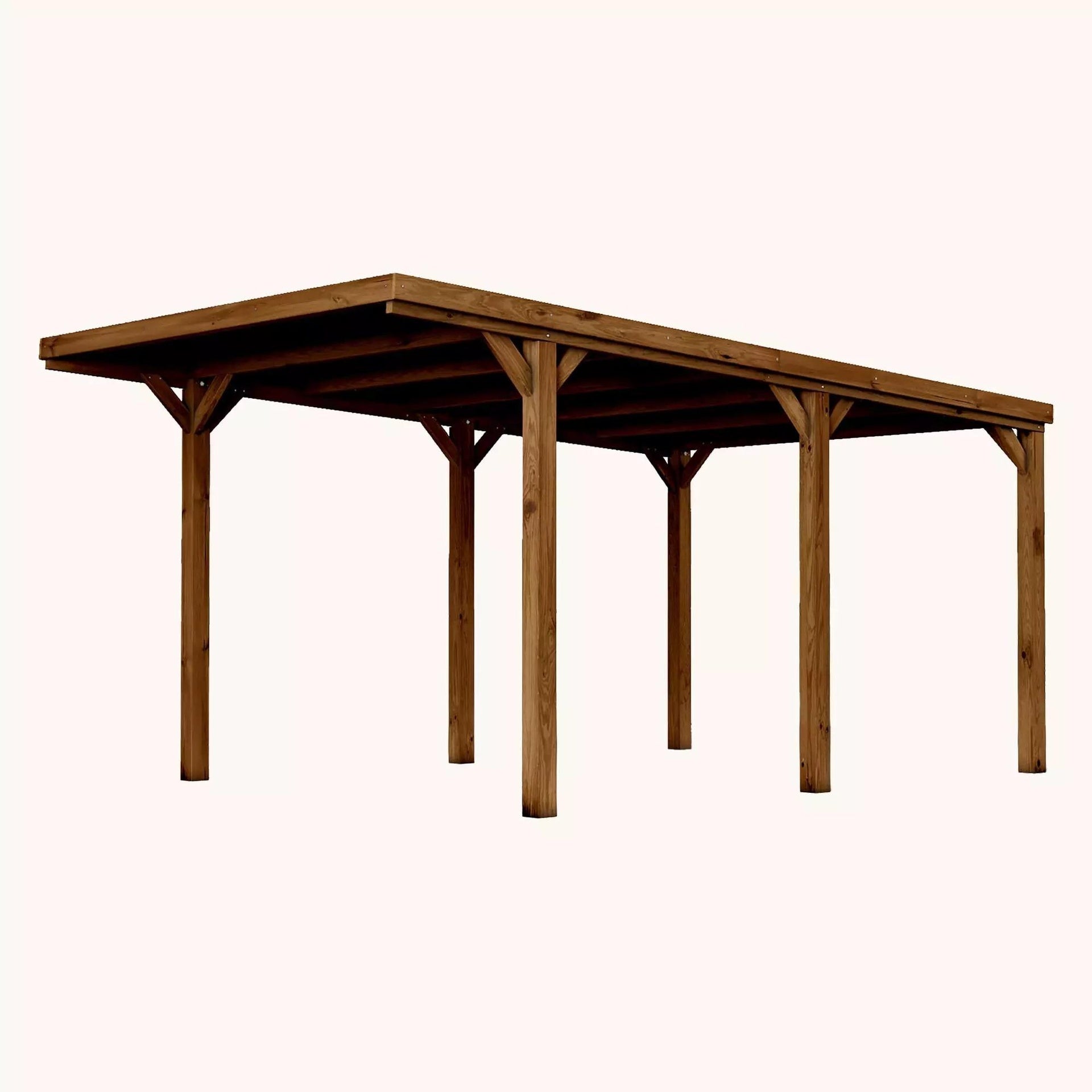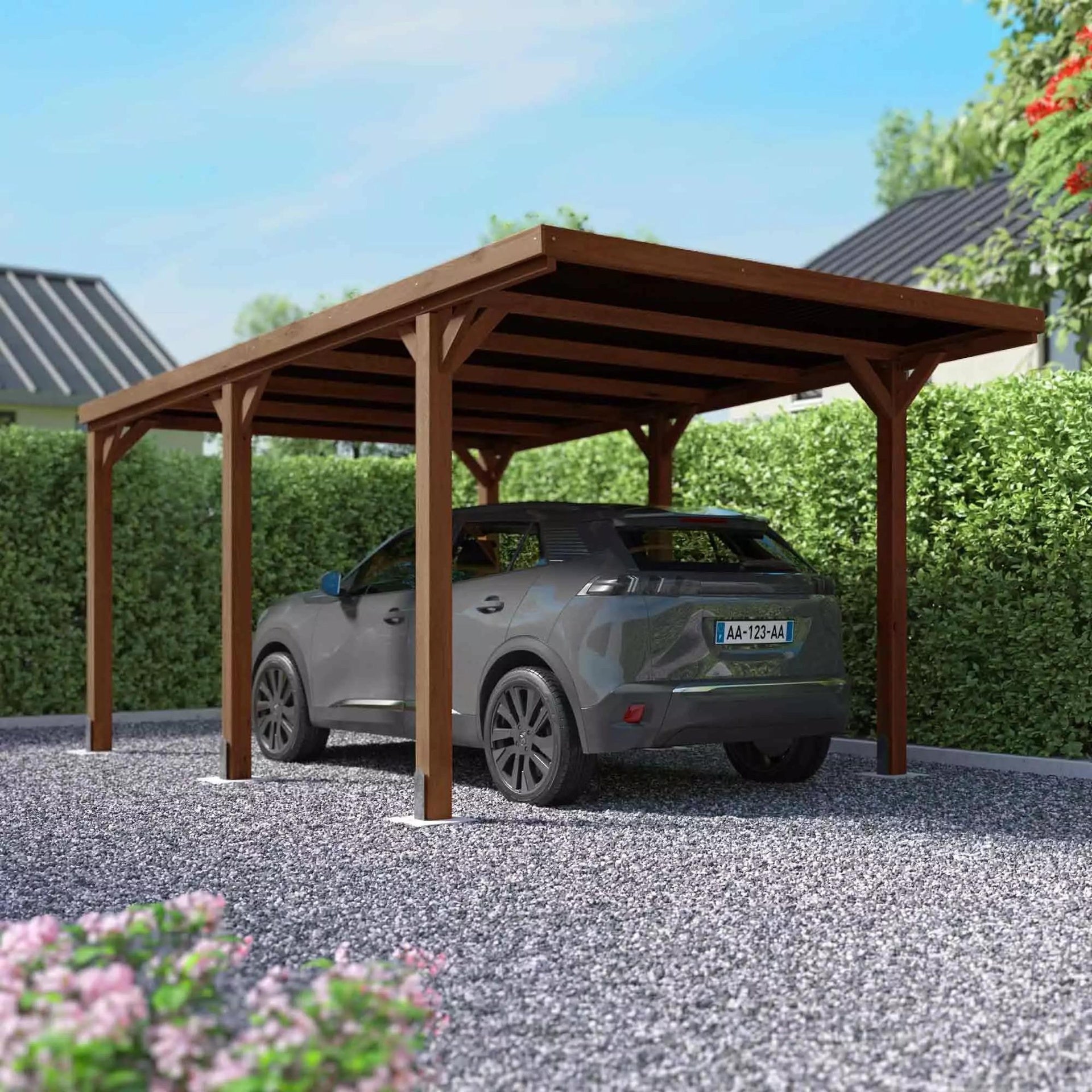 La cochera de diseño VICTOR de Cerland ofrece un refugio espacioso y moderno para su automóvil. Sin poste central facilita la apertura de las puertas. Certificado PEFC®, robusto, de pino silvestre verde tratado en autoclave de clase 3, con techo de policarbonato.