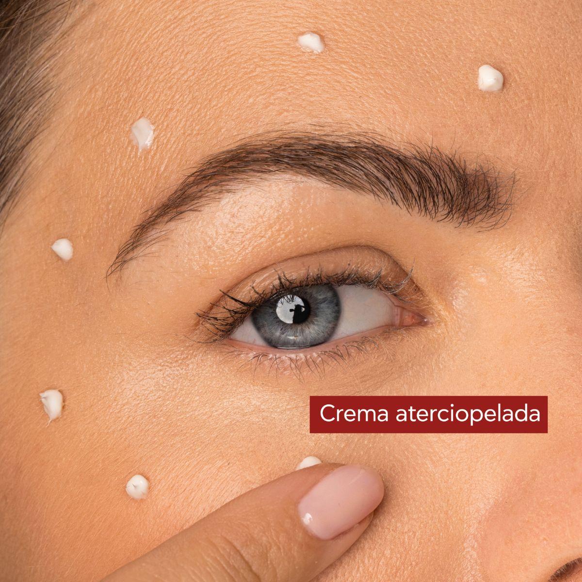 - Rellena las arrugas, proporciona un aspecto de piel más firme y alisa los parpados gracias a los polifenoles del propóleo y de la vid y el colágeno vegetal.