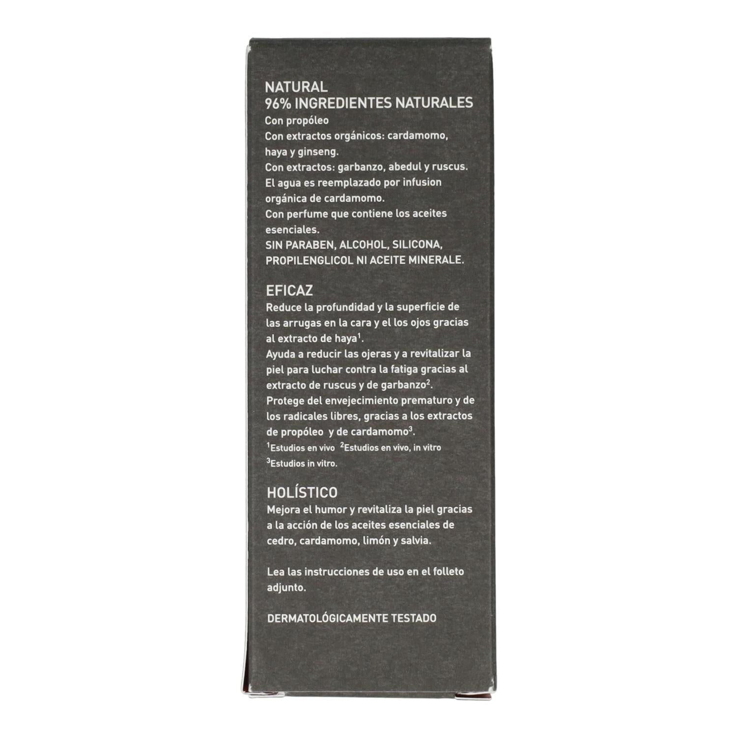 - La combinación de ingredientes orgánicos, como el cardamomo, el ginseng y el aceite de yoyoba, posee propiedades antisépticas, anti-inflamatorias y tonificantes, además de hidratar y suavizar la piel.