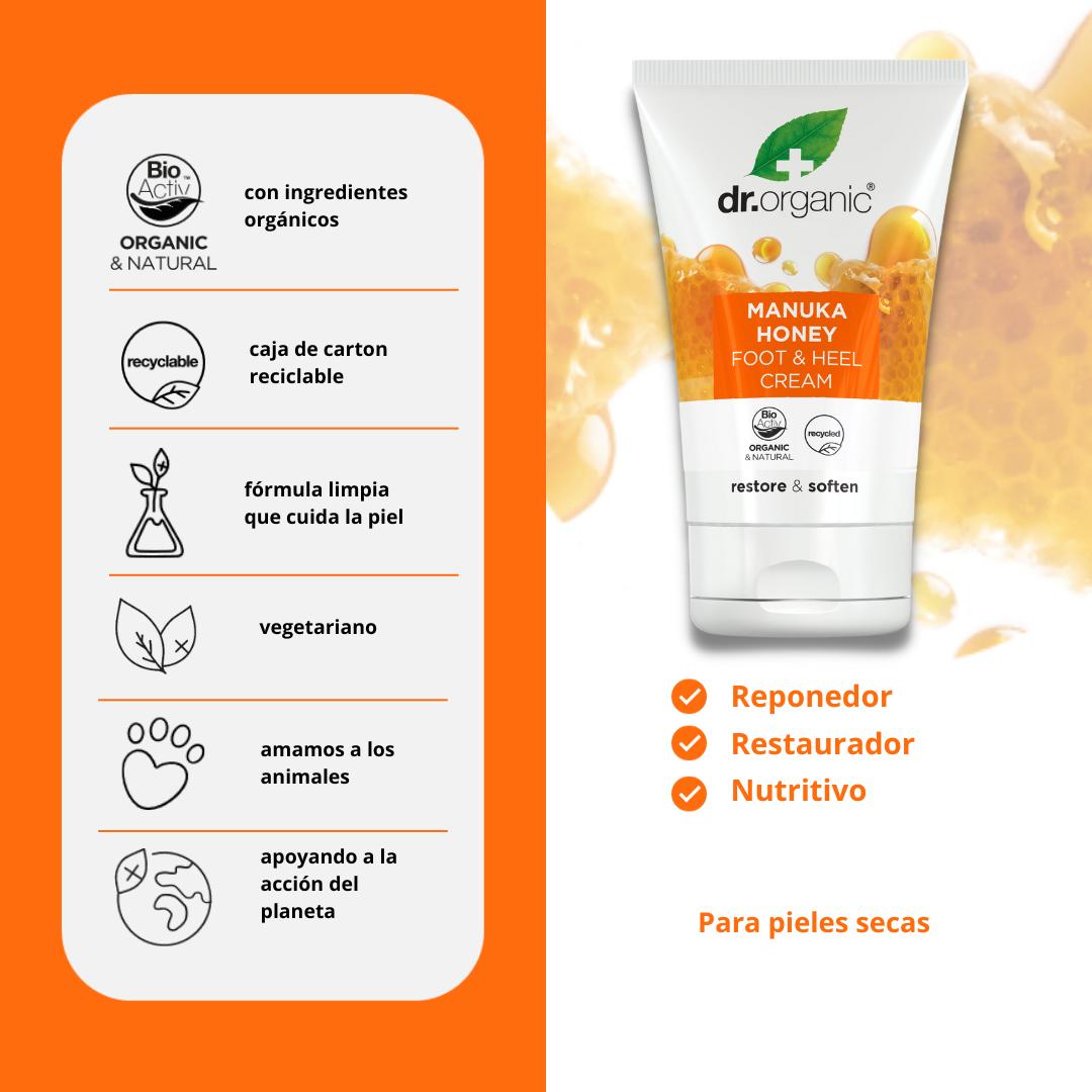 Toda la información sobre "Crema de pies reparadora Miel de Manuka Dr. Organic, 125ml"