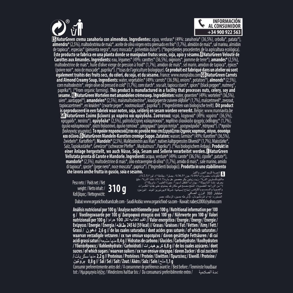 Toda la información sobre "Crema de Zanahorias con almendras Naturgreen, 310 g"