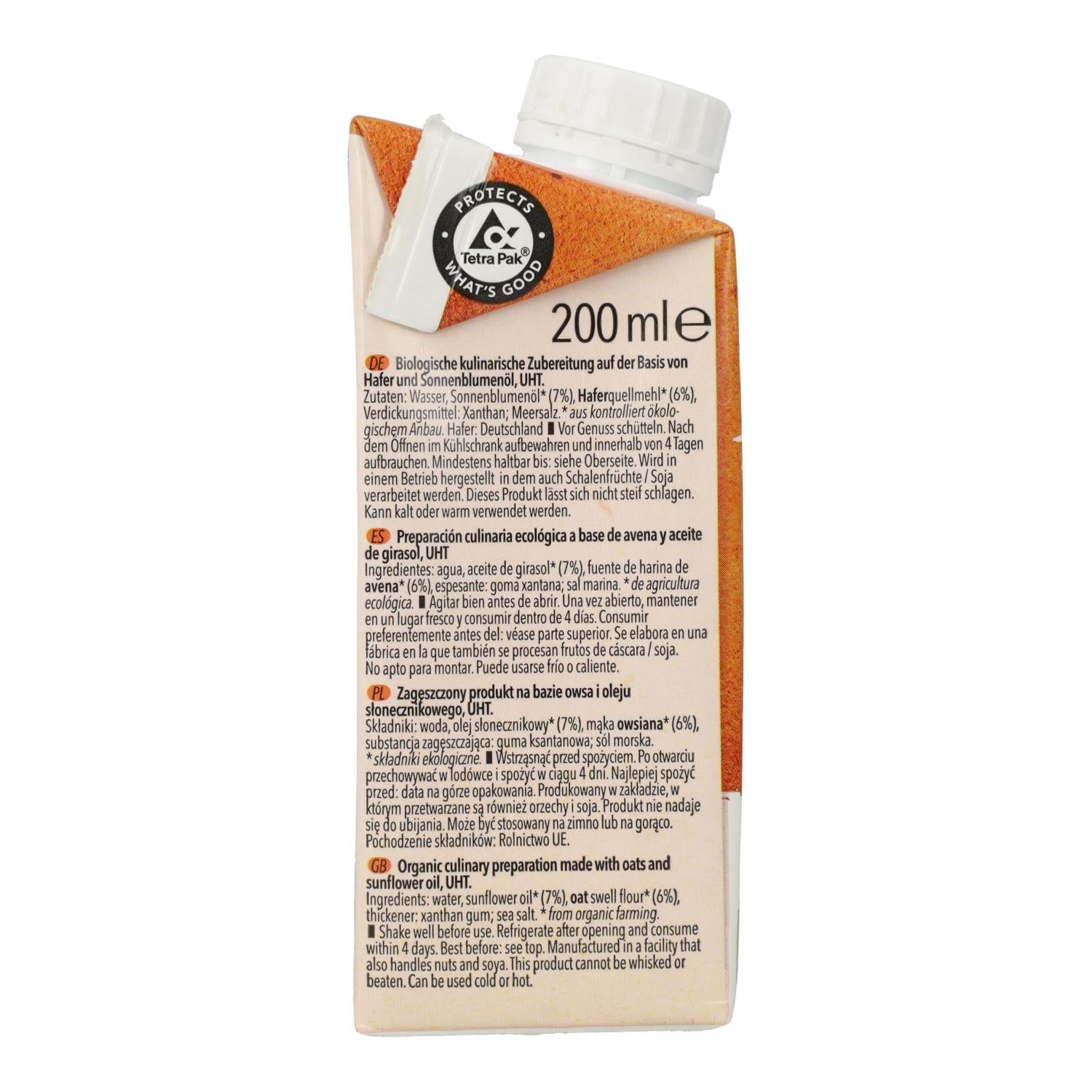 Toda la información sobre "Crema para cocinar de Avena Liquida Bio Natumi, 200 ml"