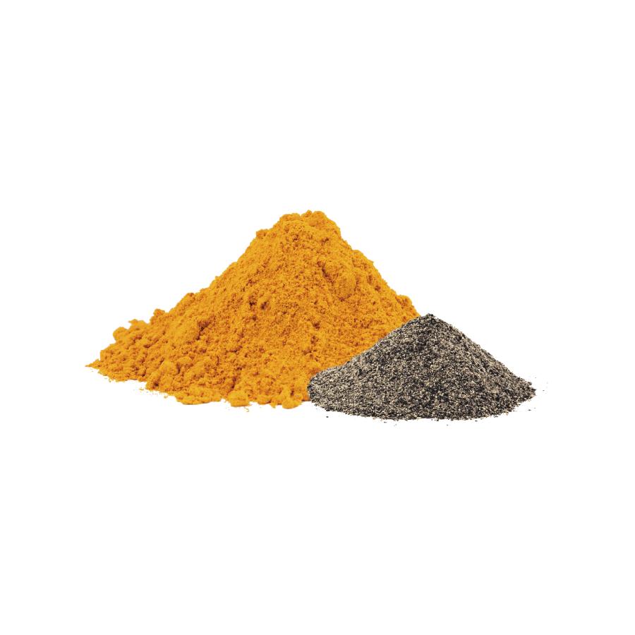 Cúrcuma y Pimienta con todas las propiedades de la cúrcuma en sinergia con la pimienta para mejorar su absorción.