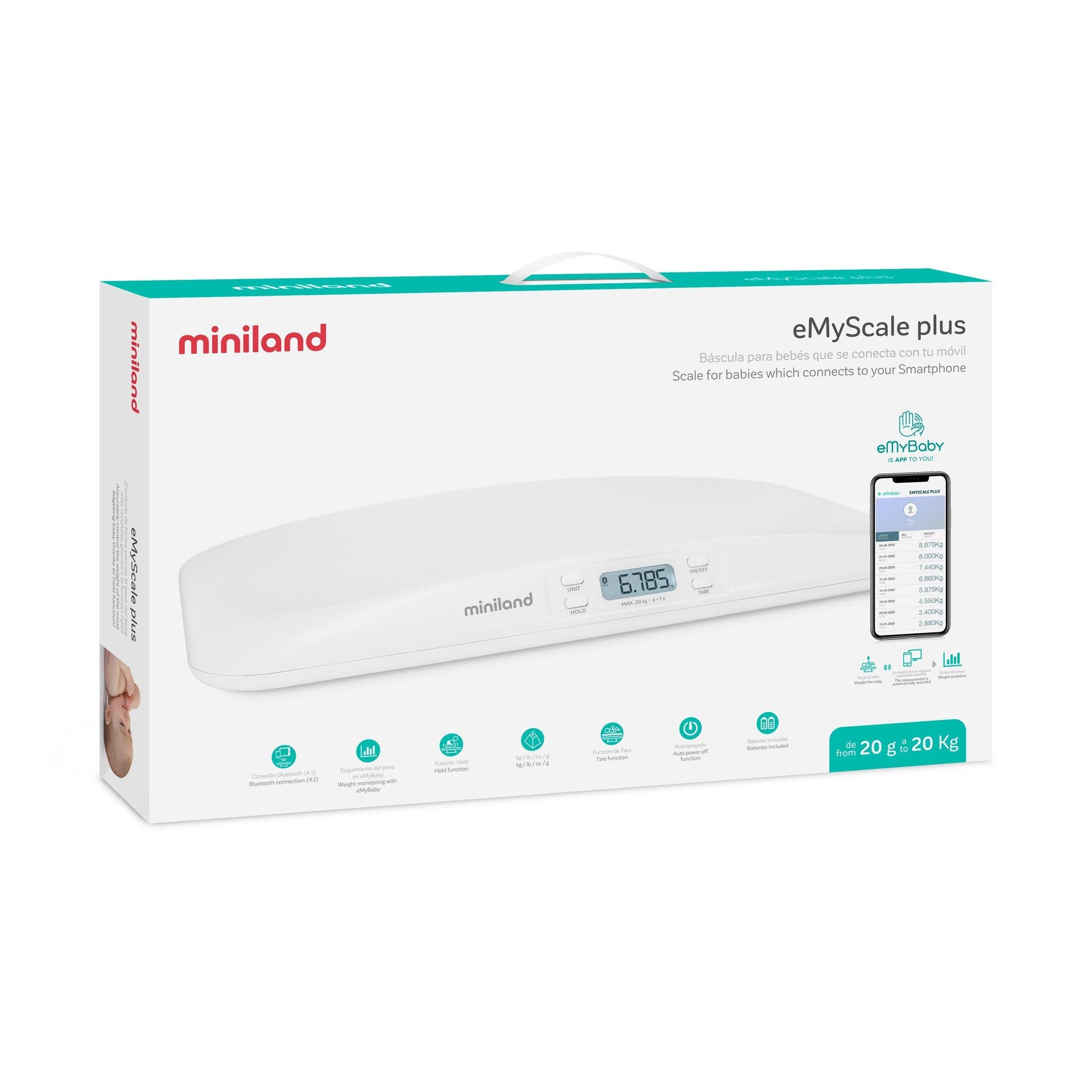 - Muy útil para todos los bebés, y en especial para los recién nacidos o los que tienen problemas de peso. Es posible utilizar esta báscula de forma aislada o con eMyBaby®. ¡De bebé a niño, siempre el peso controlado!