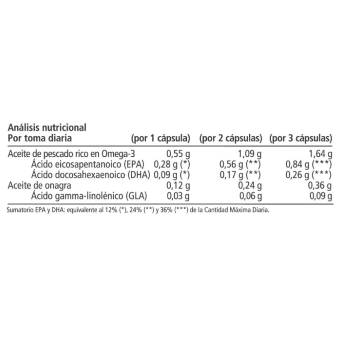 - Aceite de onagra rico en Ω-6 (GLA): en combinación con el resto de componentes contribuye al buen funcionamiento del cerebro y la transmisión eficiente de información entre neuronas.
