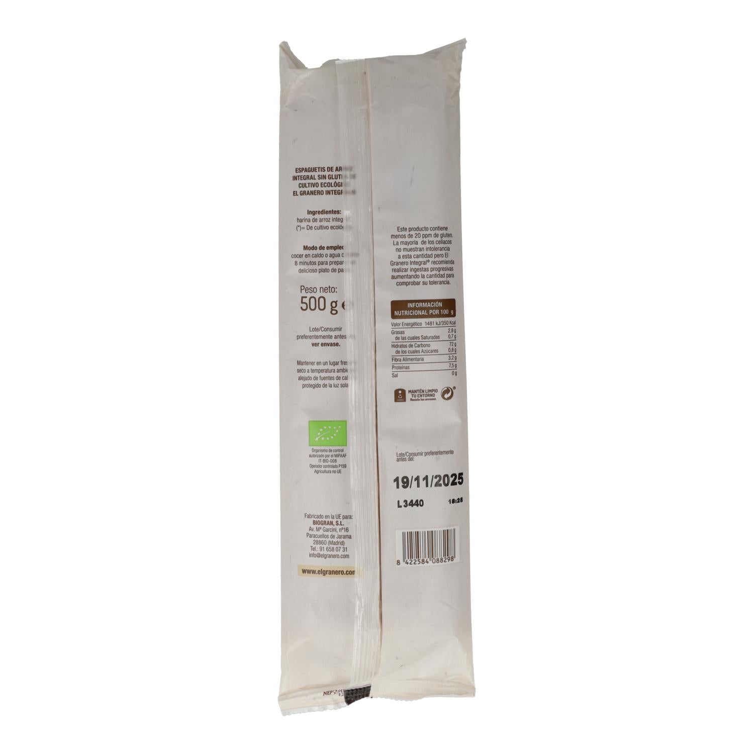 Toda la información sobre "Espaguetis de Arroz Integral Sin Gluten El Granero, 500 g"