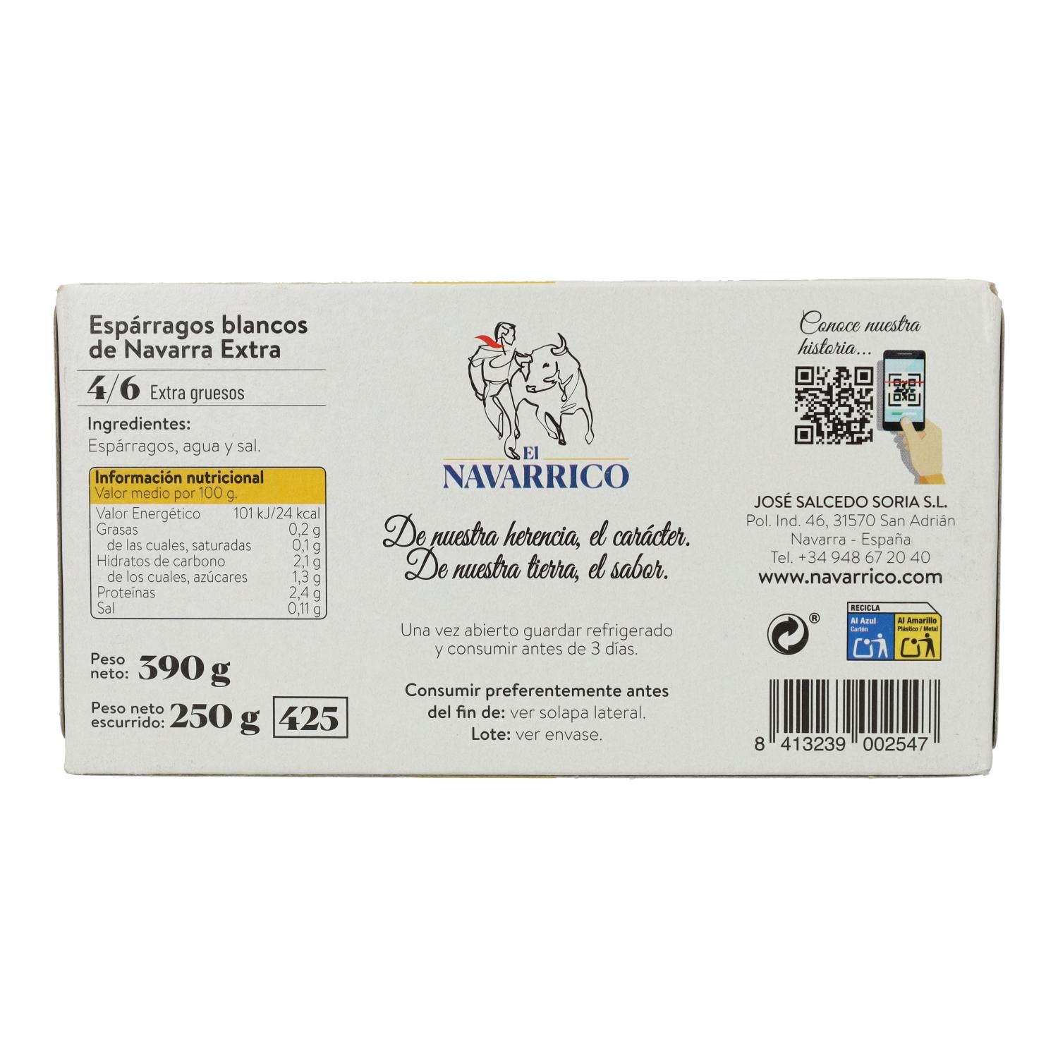 Toda la información sobre "Espárragos Cojonudos El Navarrico 4/6 FR D.O Lata 425 ml"