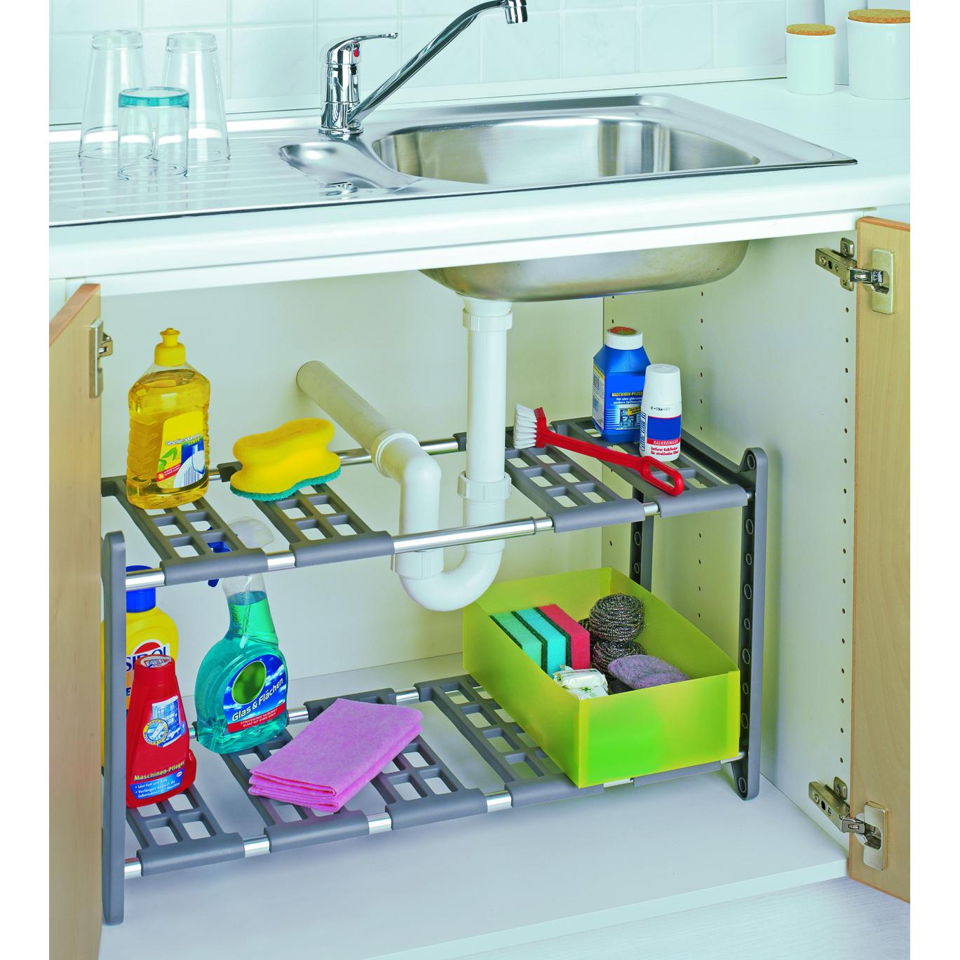 Ideal para el armario del fregadero. Estantería variable que se adapta al espacio. Rebajes para el sifón, el desagüe y las conducciones de fácil regulación.
