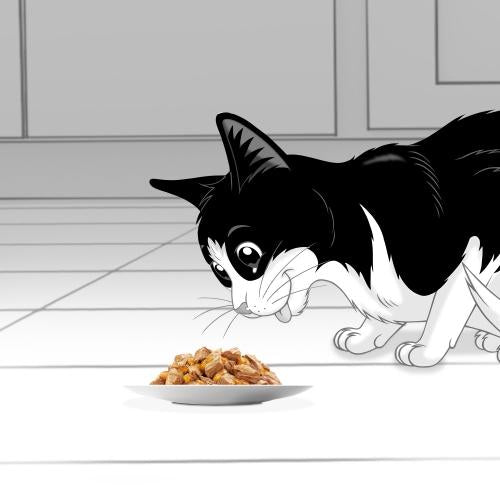 Para un gato adulto medio (4kg) servir de 3 a 4 sobres al día, en al menos 2 comidas separadas.
