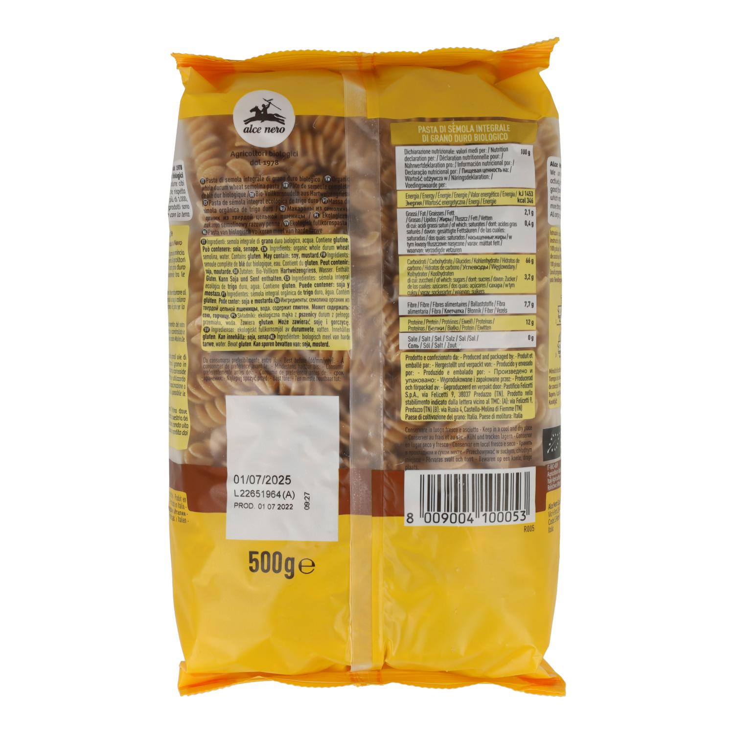 Toda la información sobre "Fusilli de trigo duro integral ecológico de grano duro unidad Alce Nero 500 g"