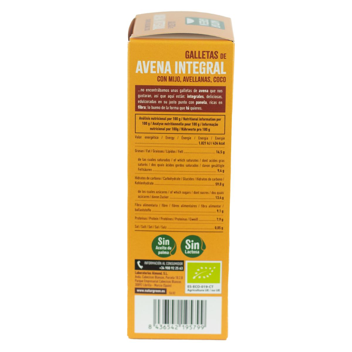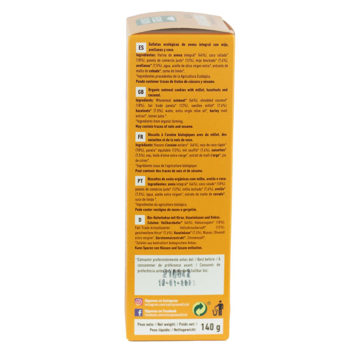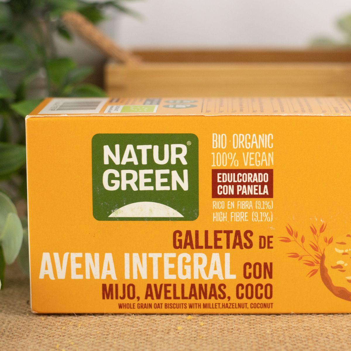 Toda la información sobre "Galletas Veganas de Avena Integral con Mijo, Avellanas y Coco Bio Naturgreen 140 g"
