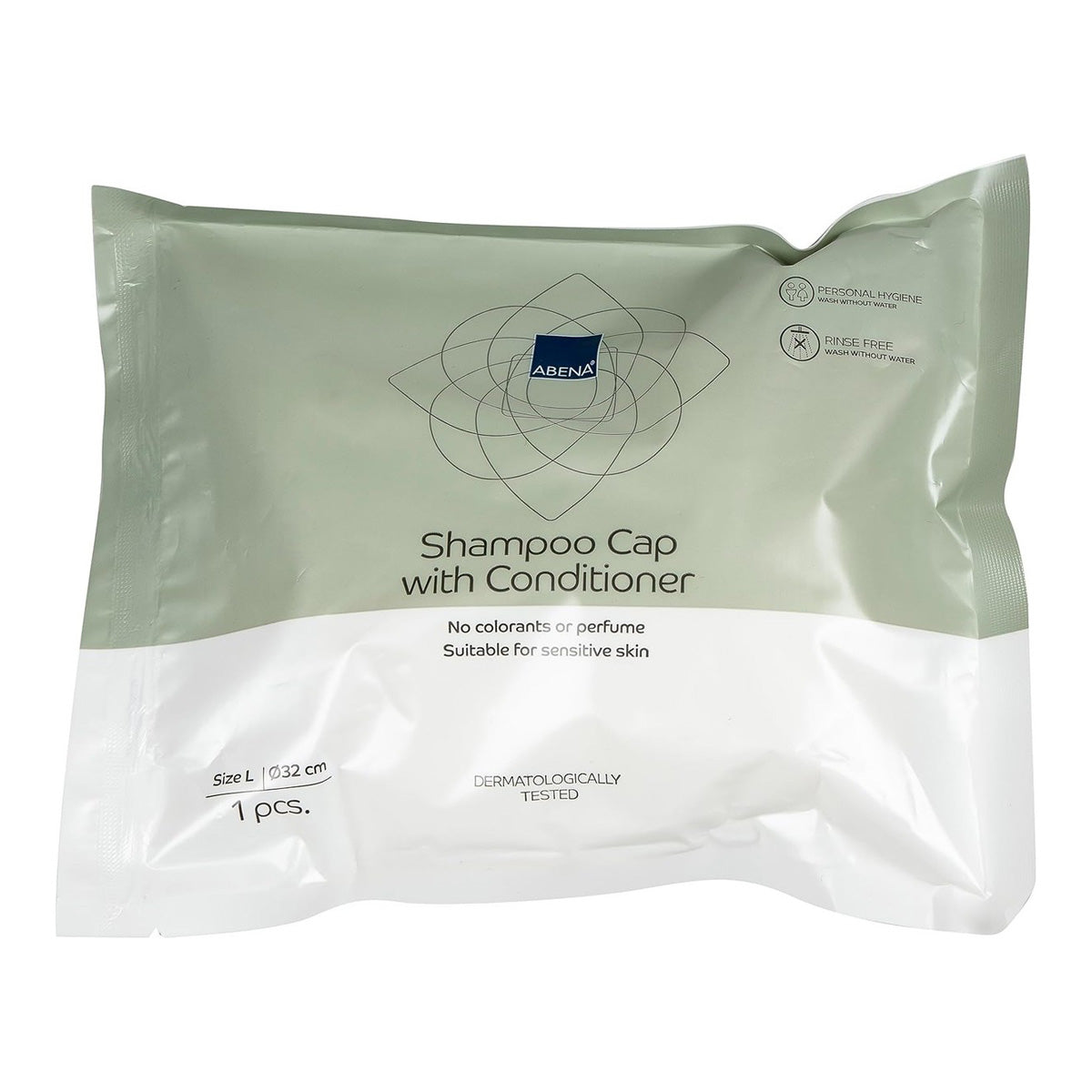 Gorro de champú Abena sin perfume con acondicionador, sin agua ni aclarado – Pack de 1 unidad