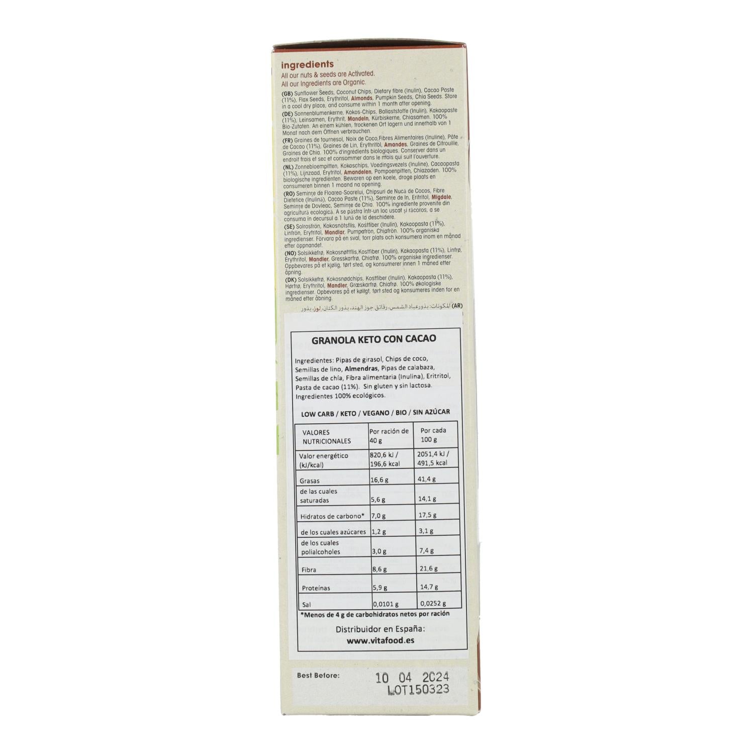 Toda la información sobre "Granola keto ecológica de cacao LOW CARB 250g"