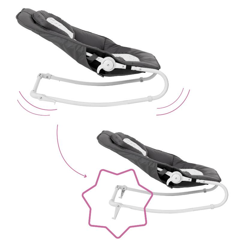 Esta tumbona puede utilizarse en posición fija o como balancín, sólo hay que abatir las pequeñas patas de la parte trasera de la tumbona para realizar un suave balanceo manual.