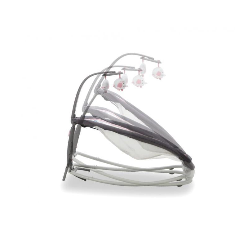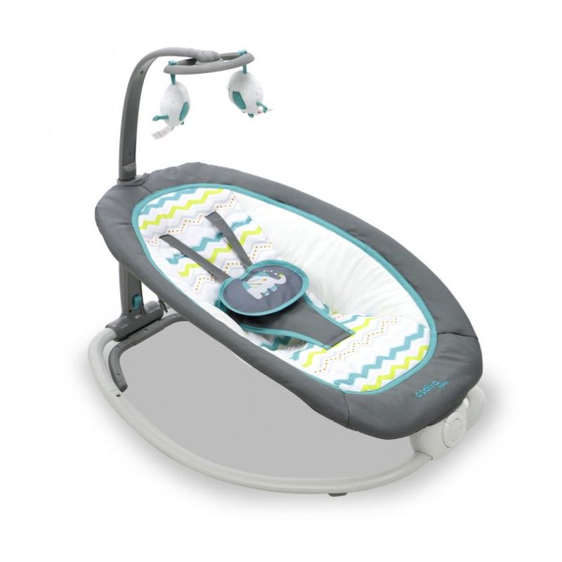 La hamaca FOLD cuenta con un compacto plegado para poder transportarla de manera cómoda. Incluye música relajante y vibración para ayudar a calmar y relajar a los más pequeños, además de una barra de juegos extraíble para estimular la motricidad del bebé.