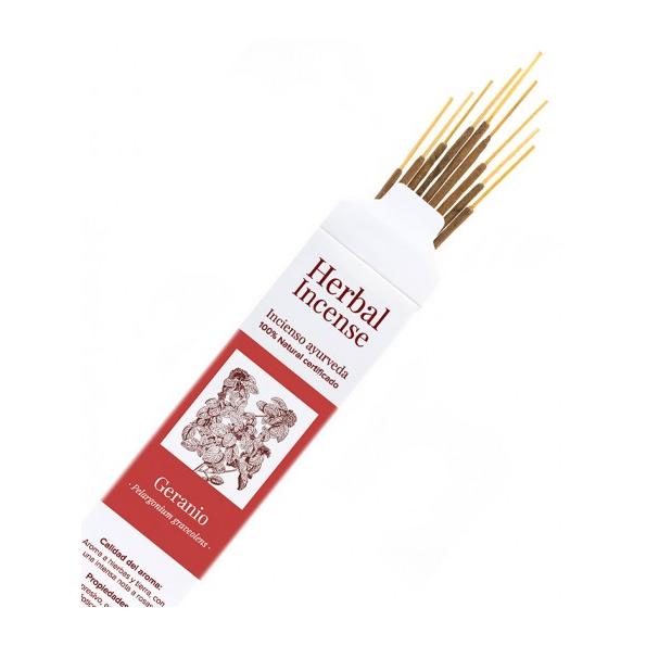 Incienso ayurveda ecológico de Geranio, certificado ICEA, para el disfrute de la aromaterapia natural sin perfumes sintéticos ni tóxicos.