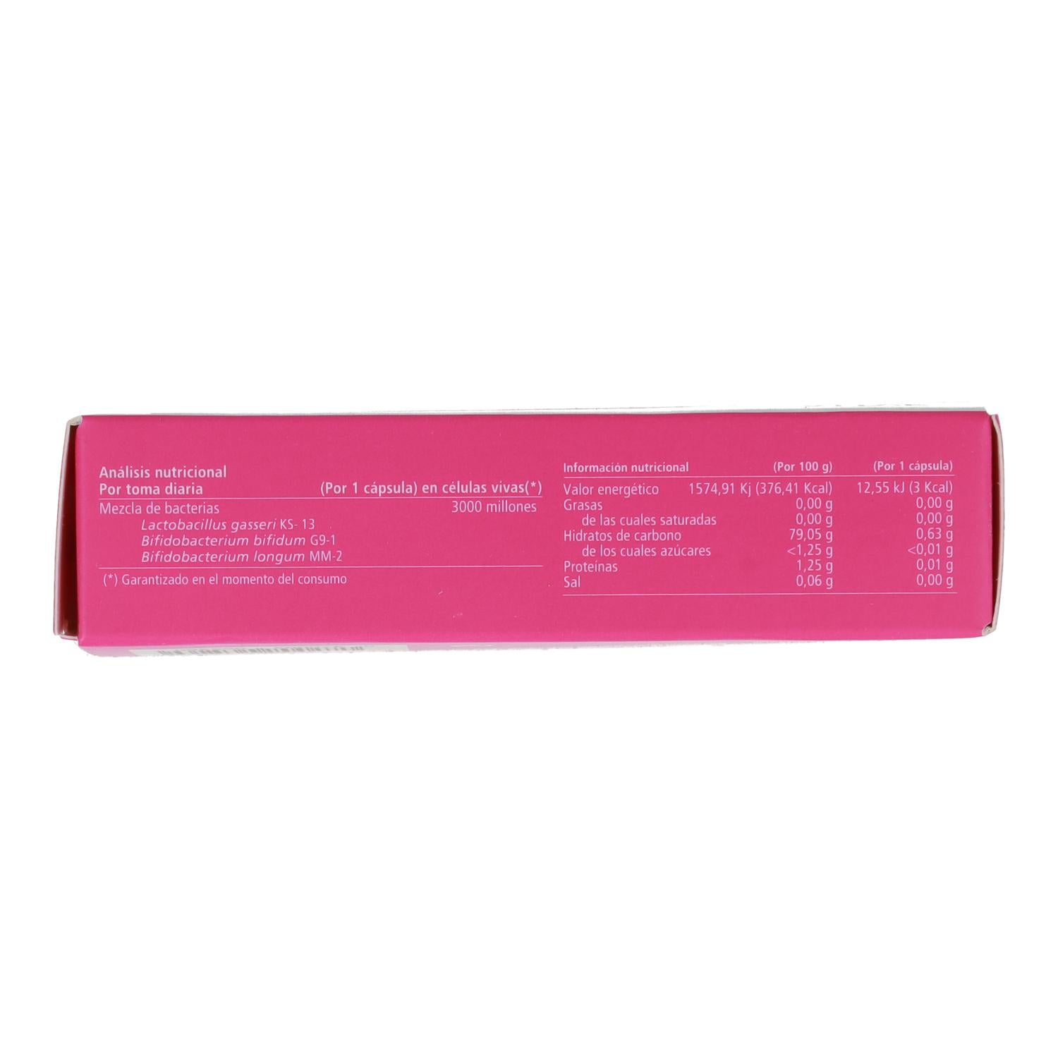 Es una combinación exclusiva de tres cepas bacterianas presentes en el intestino humano (Lactobacillus gasseri, Bifidobacterium bifidum y Bifidobacterium longum), que contribuyen a regenerar la flora intestinal beneficiosa.