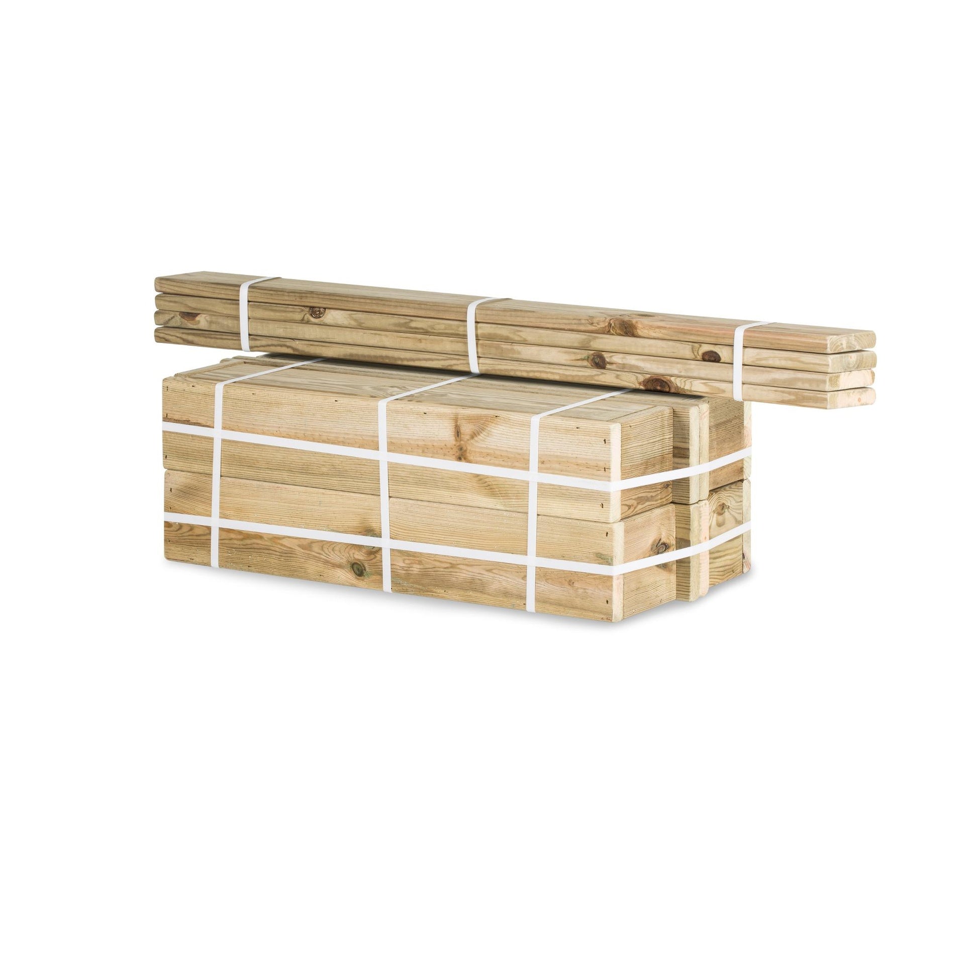 - Madera de pino nórdico tratada al autoclave para su uso en exterior.