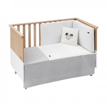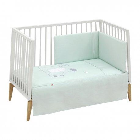 Juego de 2 piezas para vestir la cuna, compuesto por colcha invierno/verano más protector incluye un bonito cojín bordado.