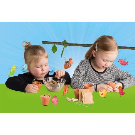 Realiza tu propia comida para pájaros ofreciendo a los pájaros autóctonos un buen puesto para comer. Seguramente podrás observar como los pájaros sacan granos de la maceta que has construido. Con este set podrás construir hasta 6 comederos. Además, podrás conrear tus propias semillas. Las semillas de cacahuete, girasol y mijo están incluidas en el set pudiendo ser cultivadas fácilmente.