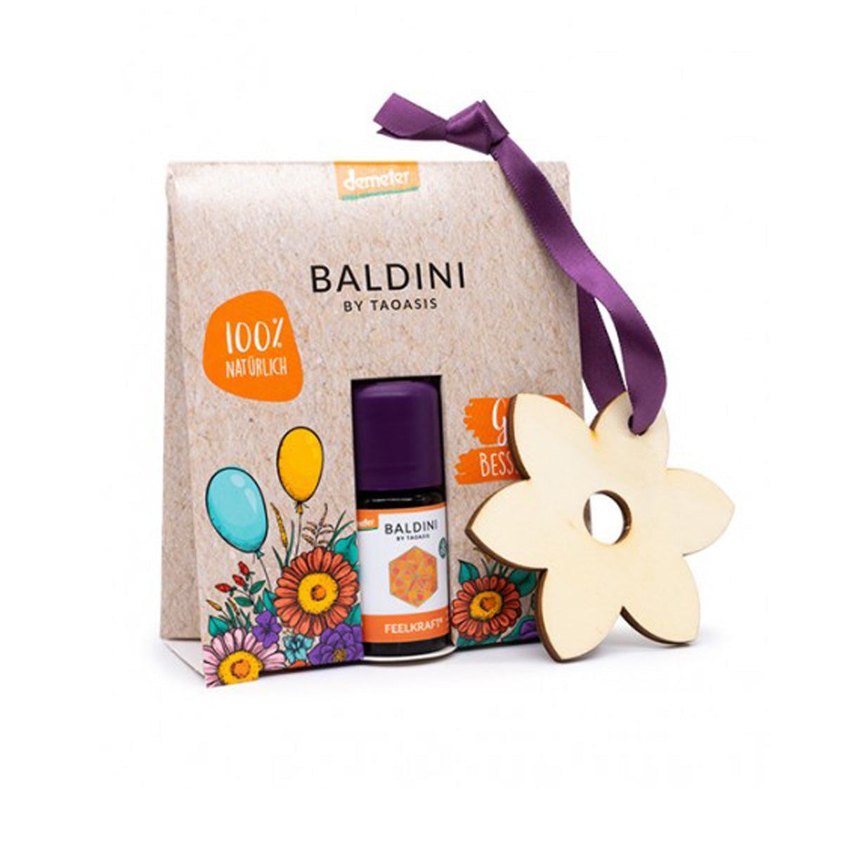 Kit Aroma Energía. Lima, Lemongrass y naranja. 5 ml. y colgante de madera en forma de flor.