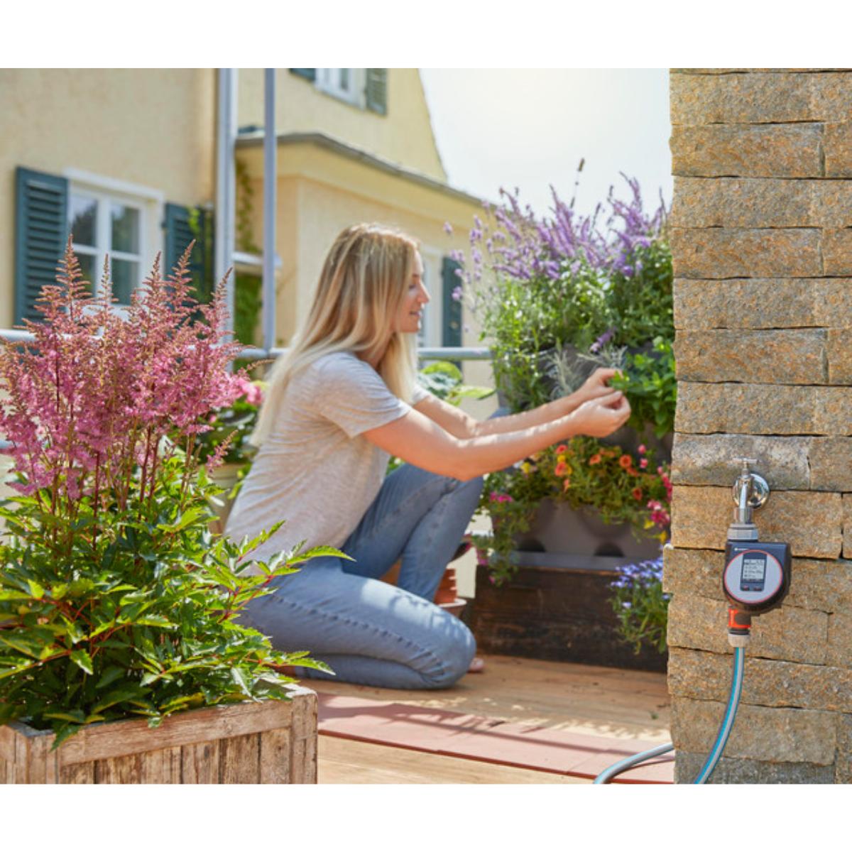 - El sistema de conexión sencillo garantiza una fácil configuración y conexión del sistema de riego, al igual que una conexión a las tuberías permanente.
