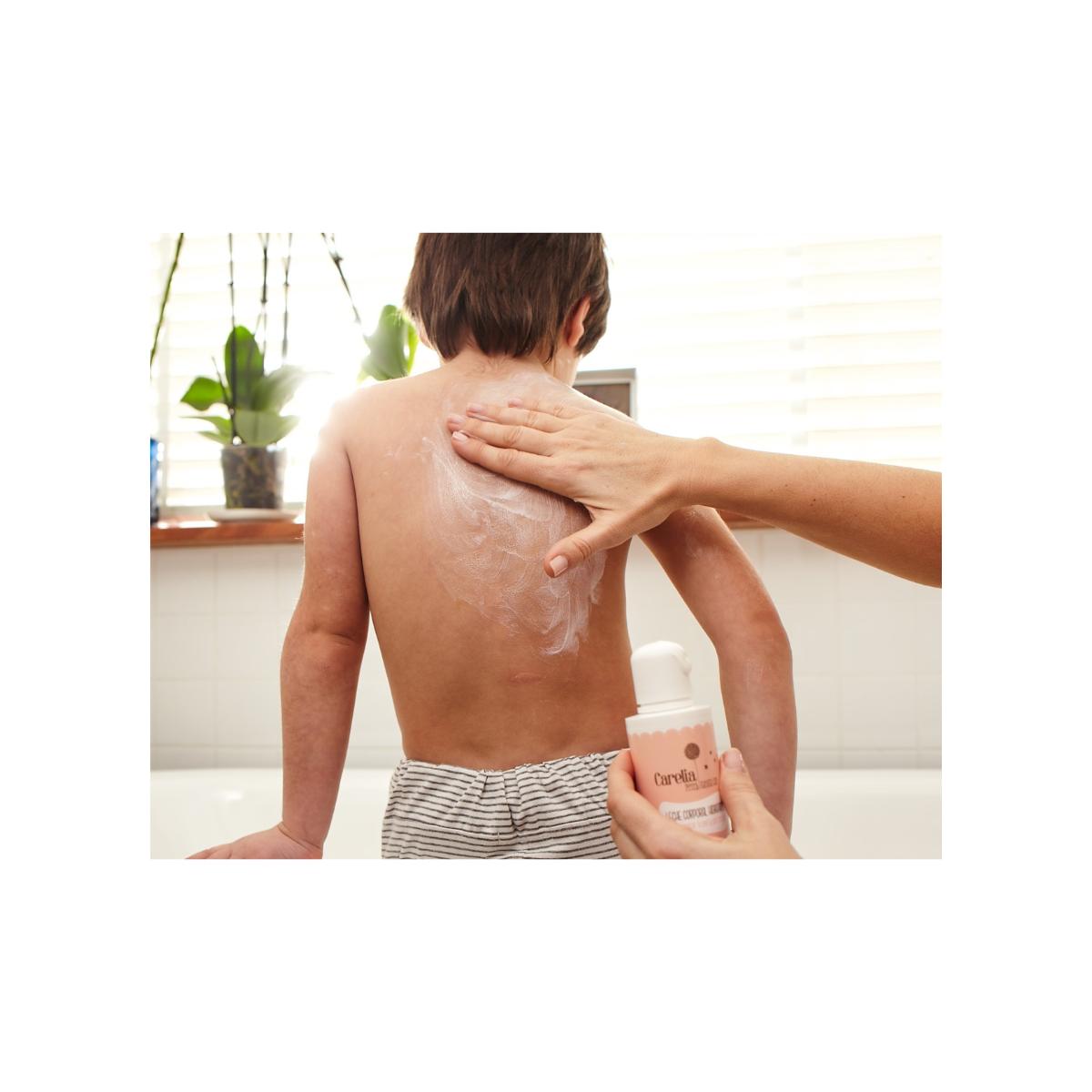 Después del baño, aplicar directamente sobre la piel y masajear suavemente hasta su completa absorción, o bien, cuando su sensible piel esté seca.