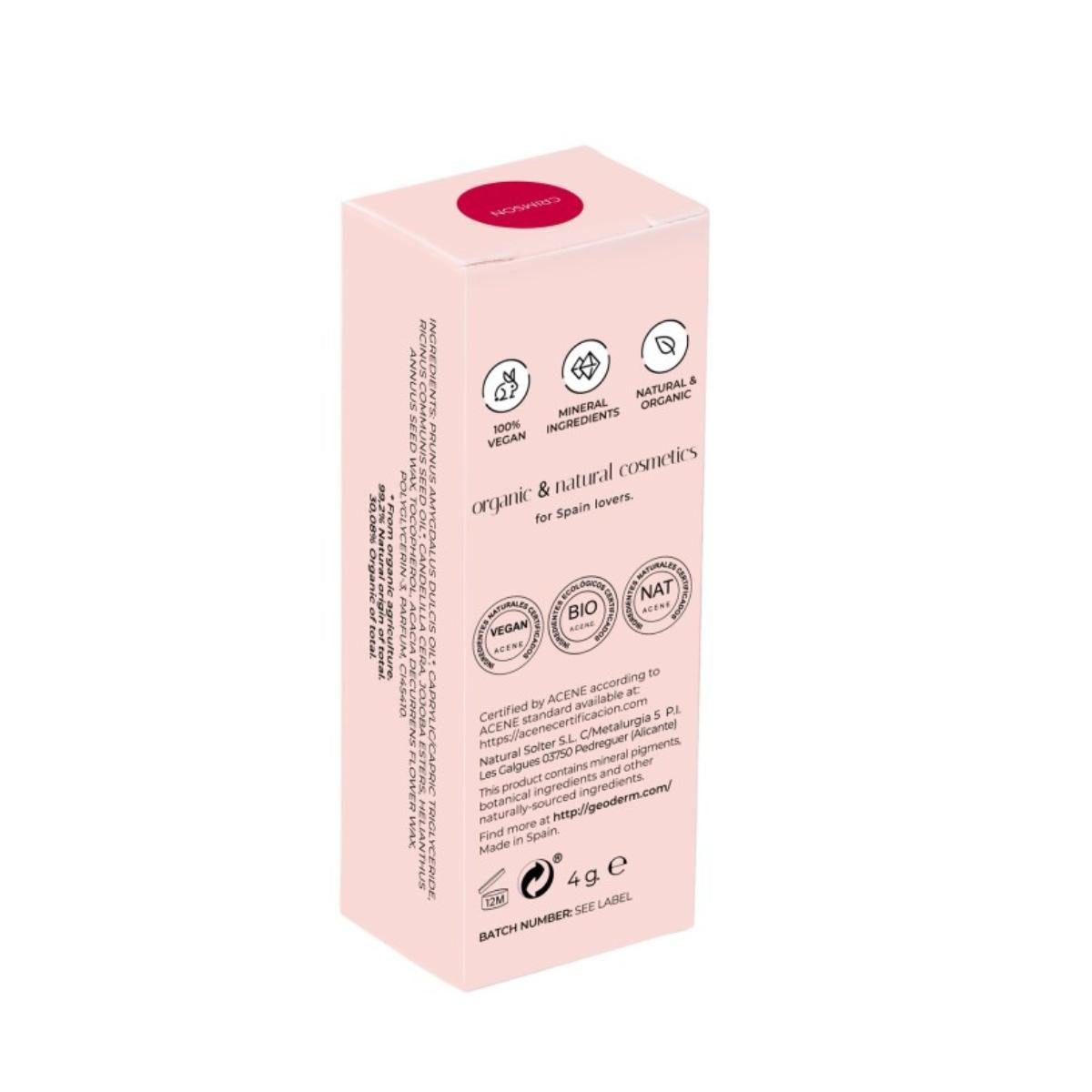 Lipstick Crimson/Rojo (Bio y Vegano) Geoderm 4 g
