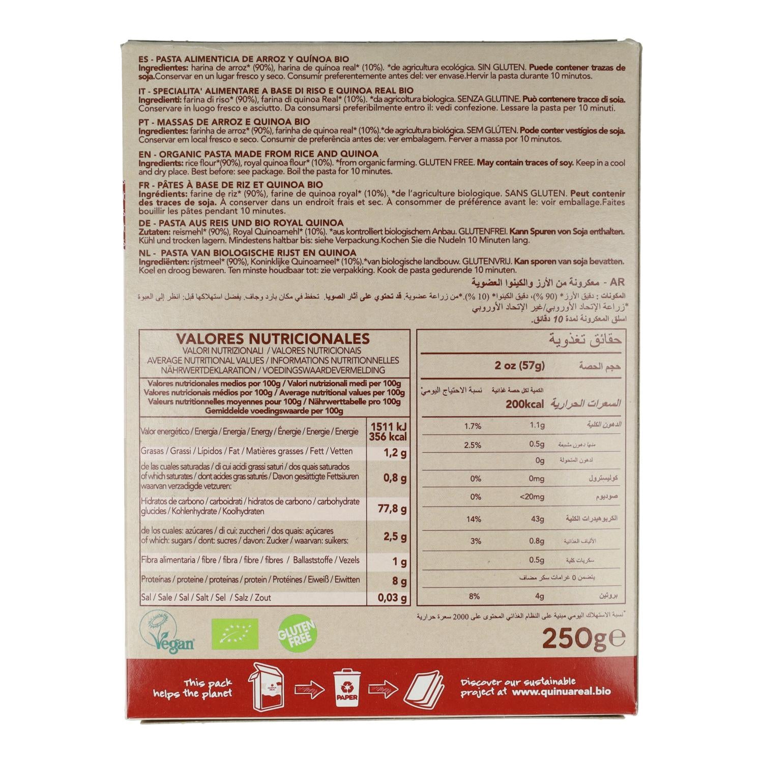 Toda la información sobre "Macarrones Penne de Quinoa Real y Arroz Bio sin gluten Quinua Real 250 g"