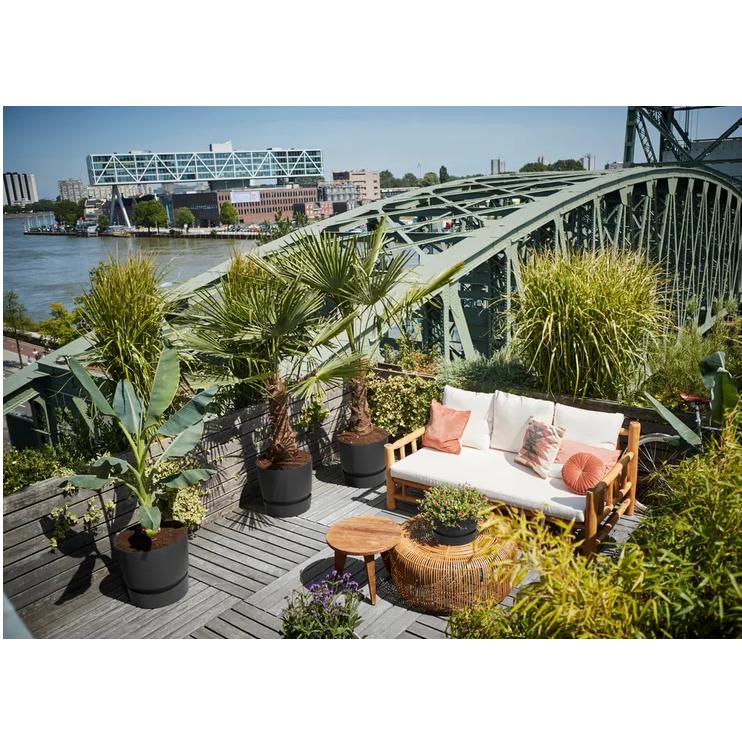 Estas macetas de calidad están hechas de plástico 100 % reciclado, así que aguantan los golpes. Estas macetas son resistentes a las heladas y no se decoloran. Así podrás disfrutar cada temporada de más vegetación en tu jardín o terraza.