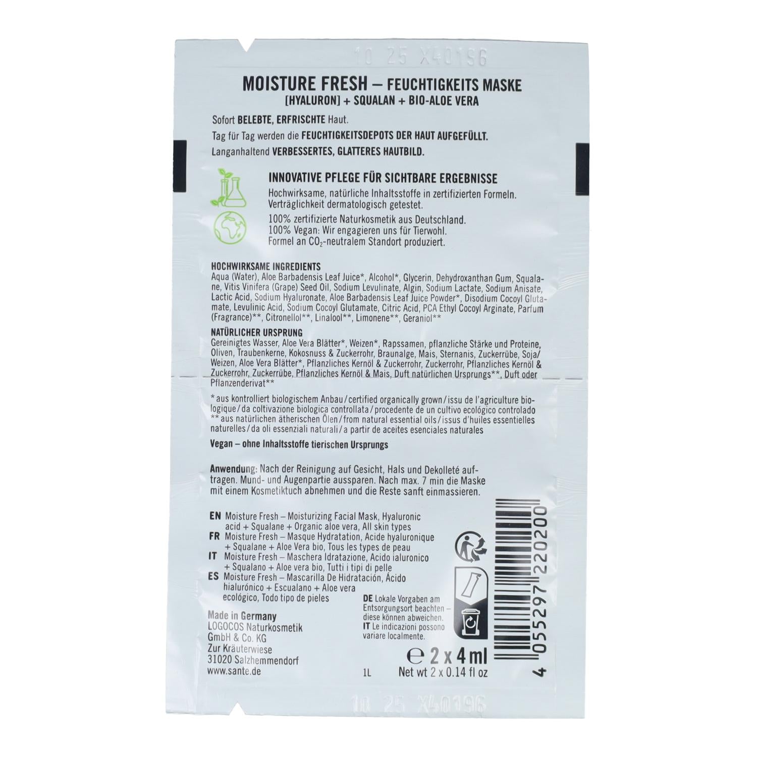 Toda la información sobre "Mascarilla fresh hidratación ácido hialurónico & aloe, Sante 2 x 4 ml"